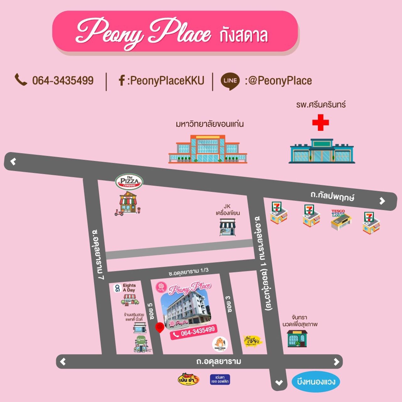 หอพักน่าอยู่ใกล้เขตมหาวิทยาลัยเดินทางสะดวกปลอดภัยใกล้ร้านสวัสดิการมีทุกอย่างครบจบที่ peony place