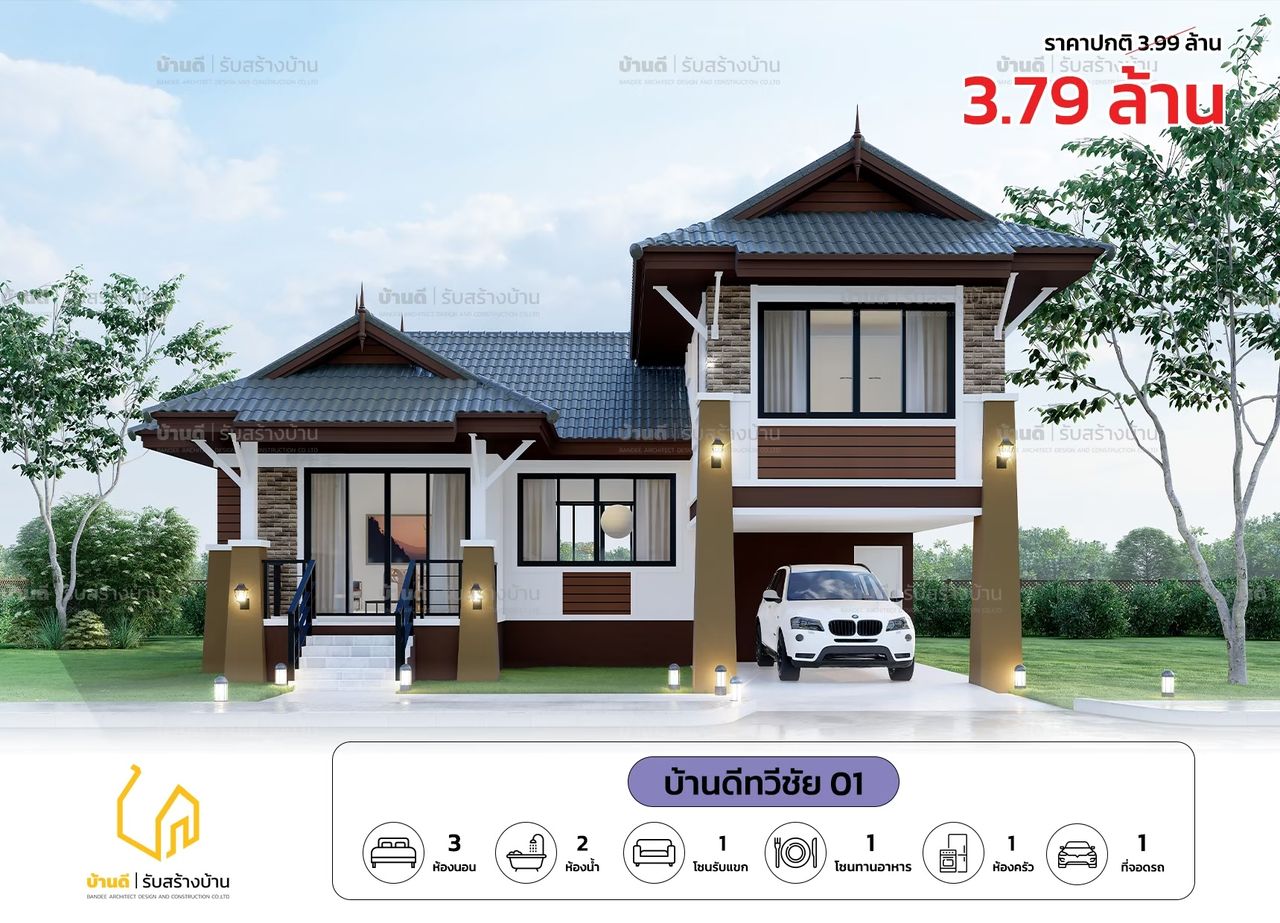 แบบบ้านดีทวีชัย 01 บ้านดี รับสร้างบ้าน - Bandee architecture Design and construction
