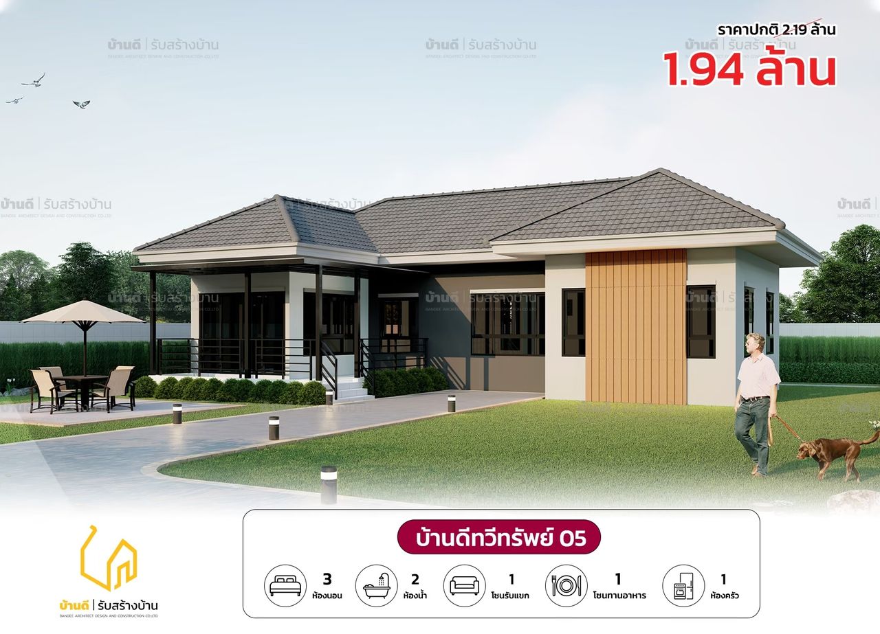 แบบบ้านทวีทรัพย์ 05 บ้านดี รับสร้างบ้าน - Bandee architecture Design and construction