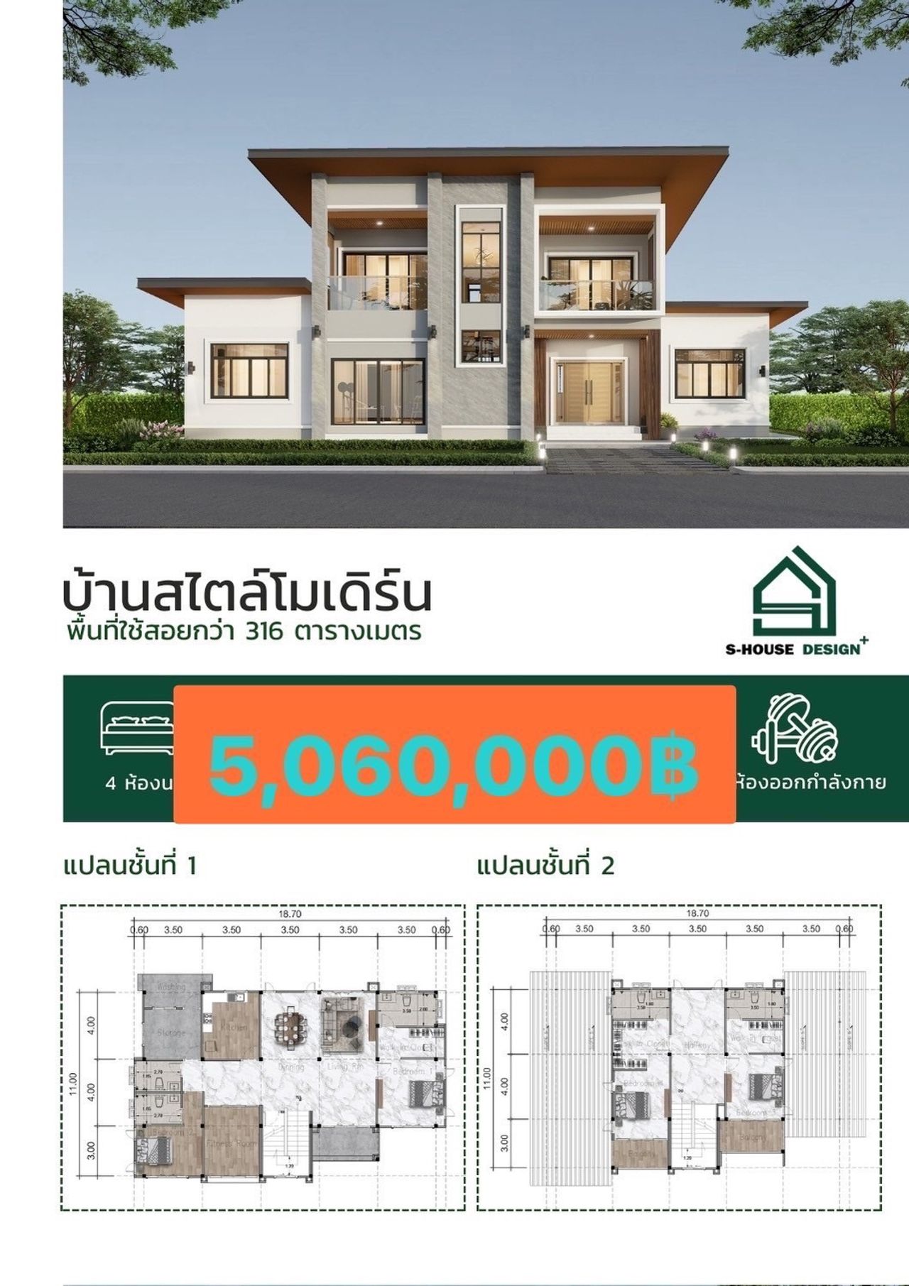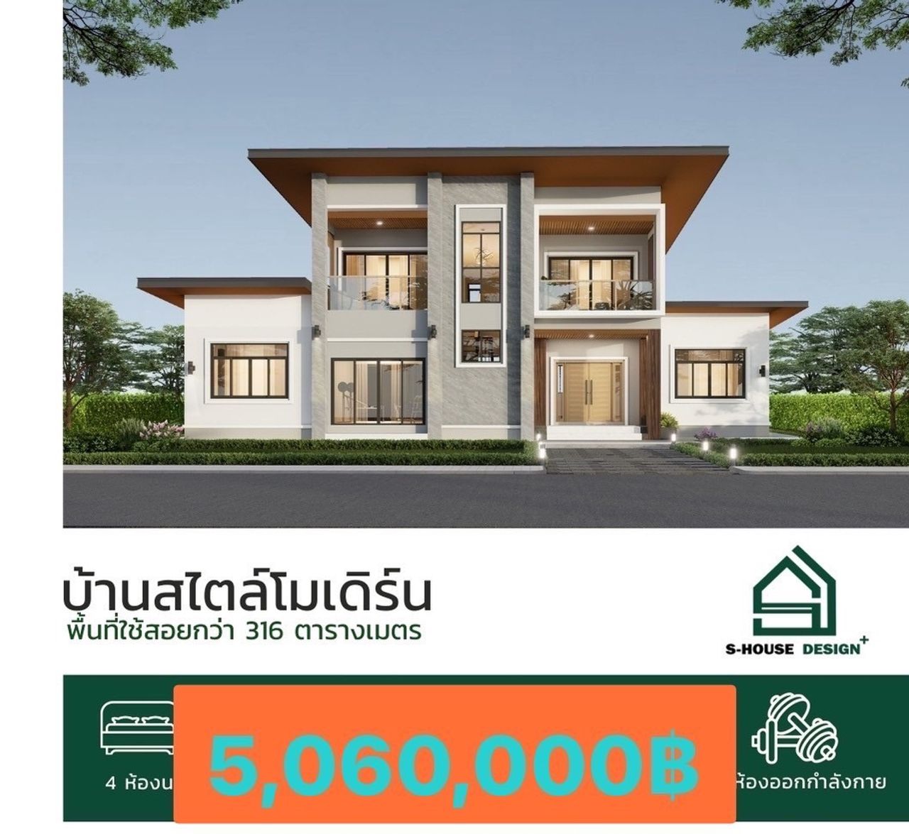 บ้านเดี่ยว 2 ชั้นสไตล์โมเดิร์นจากเอสเฮ้าส์ศูนย์รับสร้างบ้านขอนแก่นและภาคอีสาน