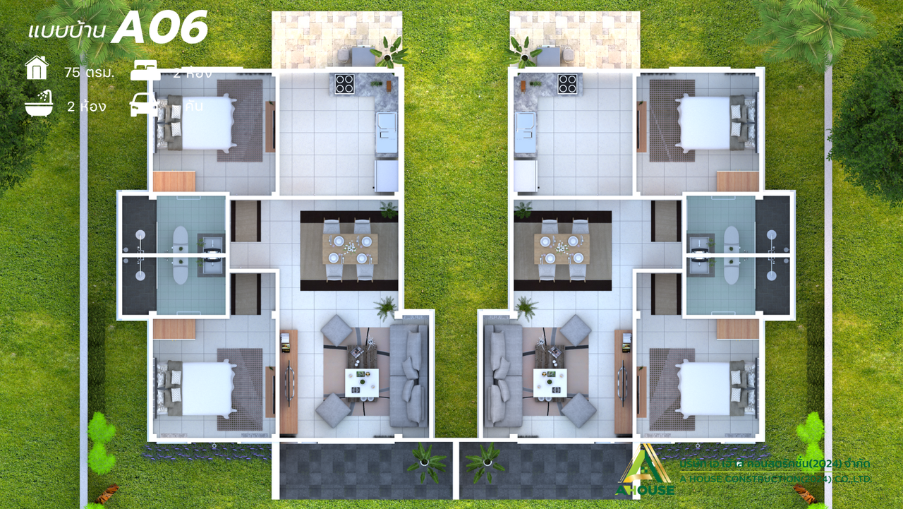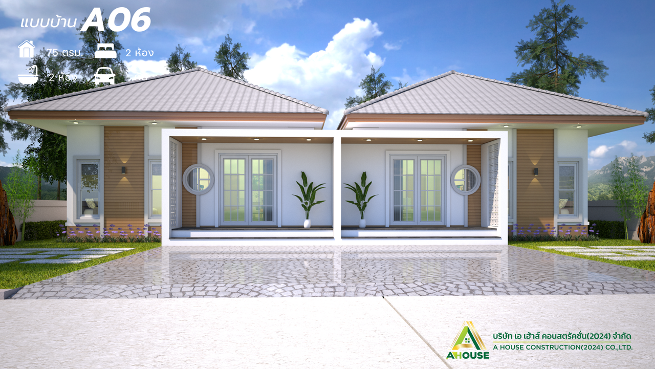 แบบบ้านแฝดชั้นเดียวสไตล์ minimal ได้ถูกออกแบบให้มีความหลากหลาย ใช้โทนสีน้ำตาลแบบอบอุ่น หน้าต่างวงกลมแบบมินิมอล สามารถเข้ากับได้ทุกฟังก์ชันต่างๆ ภายในบ้านได้อย่างครบครันตอบรับการอยู่อาศัยของเจ้าของบ้านได้เป็นอย่างดี