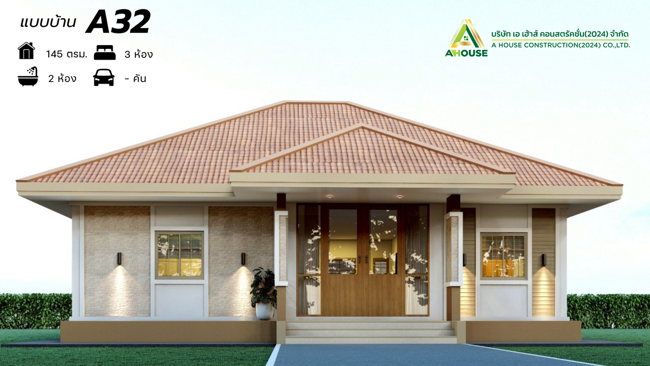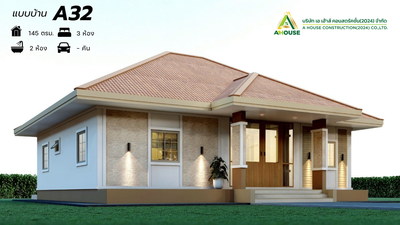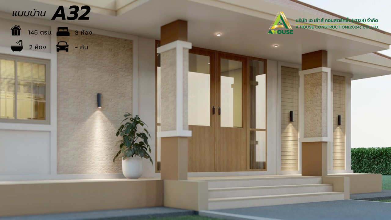 ตัวบ้านถูกออกแบบในสไตล์ CONTEMPORARY บ้านที่นิยมก่อสร้าง ตัวบ้านโทนสีนำ้ตาล หลังคาทรงปั้นหยา ตัวบ้านยกสูง ตกแต่งด้วยหินกาบสะท้อนที่ความธรรมชาติ ประตูไม้เสริมกระจกบานใหญ่ช่วยเพิ่มพื้นที่รับแสง เหมาะสำหรับการใช้ชีวิตอย่างลงตัว
