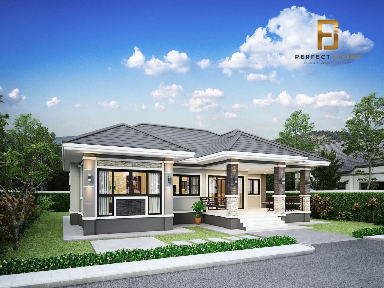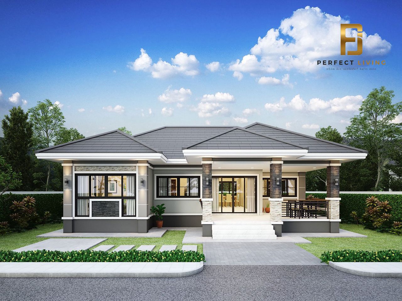 บ้านหลังใหญ่ ออกแบบในสไตล์ ปั้นหยายกพื้นสูง (Modern Classic Gable Roof) ที่ผสมผสานความหรูหราเรียบง่ายเข้ากับความอบอุ่นของดีไซน์ร่วมสมัยได้อย่างลงตัว ตัวบ้านยกพื้นสูงช่วยเพิ่มความสง่างามและป้องกันความชื้น อีกทั้งยังช่วยให้อากาศถ่ายเทได้ดี เหมาะกับภูมิอากาศเมืองไทยอย่างแท้จริง