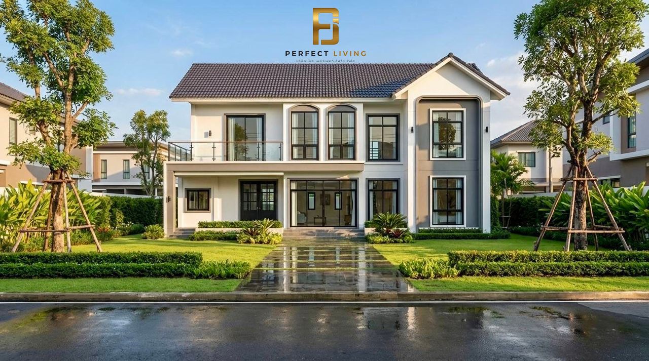 บ้านนิยามใหม่ สวยไม่ซ้ำใคร ผสมผสานเสน่ห์แห่งตะวันตกและความทันสมัยอย่างลงตัว ด้วยจั่วสูงและซุ้มโค้งที่เป็นเอกลักษณ์ ให้ทุกมุมของบ้านหรูหราอย่างมีระดับ