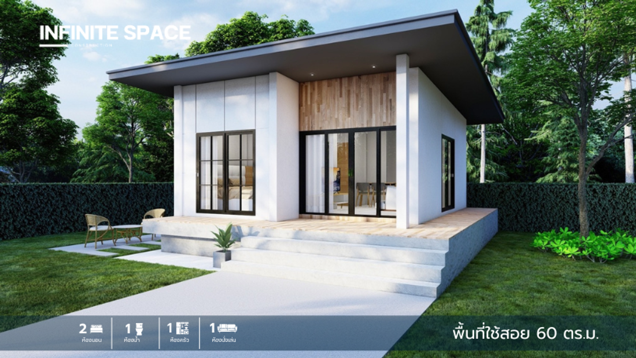 แบบบ้านพร้อมก่อสร้าง : 2 ห้องนอน 1 ห้องน้ำ 1 ห้องครัว 1 ห้องรับประทานอาหาร 1 ซักล้าง