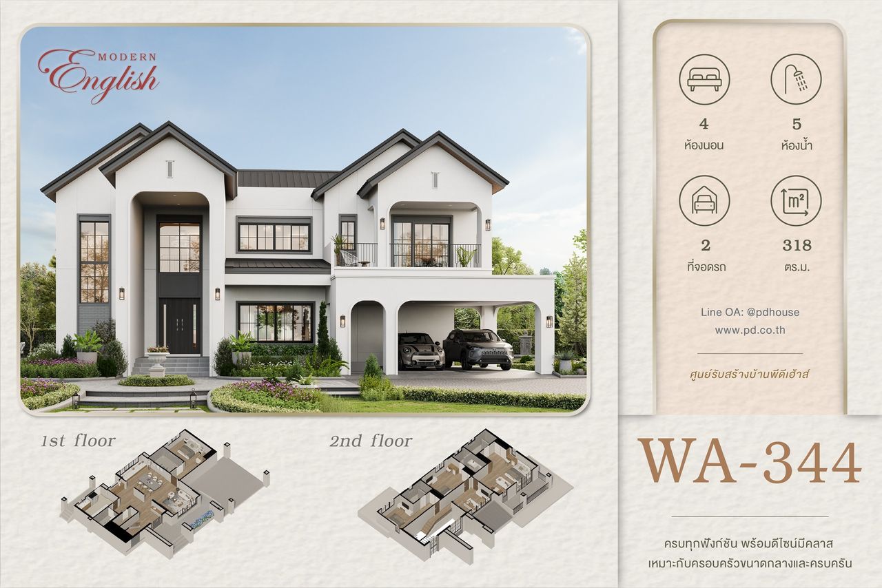 Modern English สง่างามเหนือกาลเวลากับสถาปัตยกรรมอังกฤษแบบดั้งเดิม ผสานความทันสมัยอย่างลงตัว คุ้มค่าในทุกตารางเมตรด้วยฟังก์ชันที่ถูกออกแบบอย่างชาญฉลาดเพื่อรองรับทุกจังหวะของชีวิต พร้อมจัดสรรพื้นที่เป็นสัดส่วน มอบความสมบูรณ์แบบในการอยู่อาศัยสำหรับคุณและครอบครัว