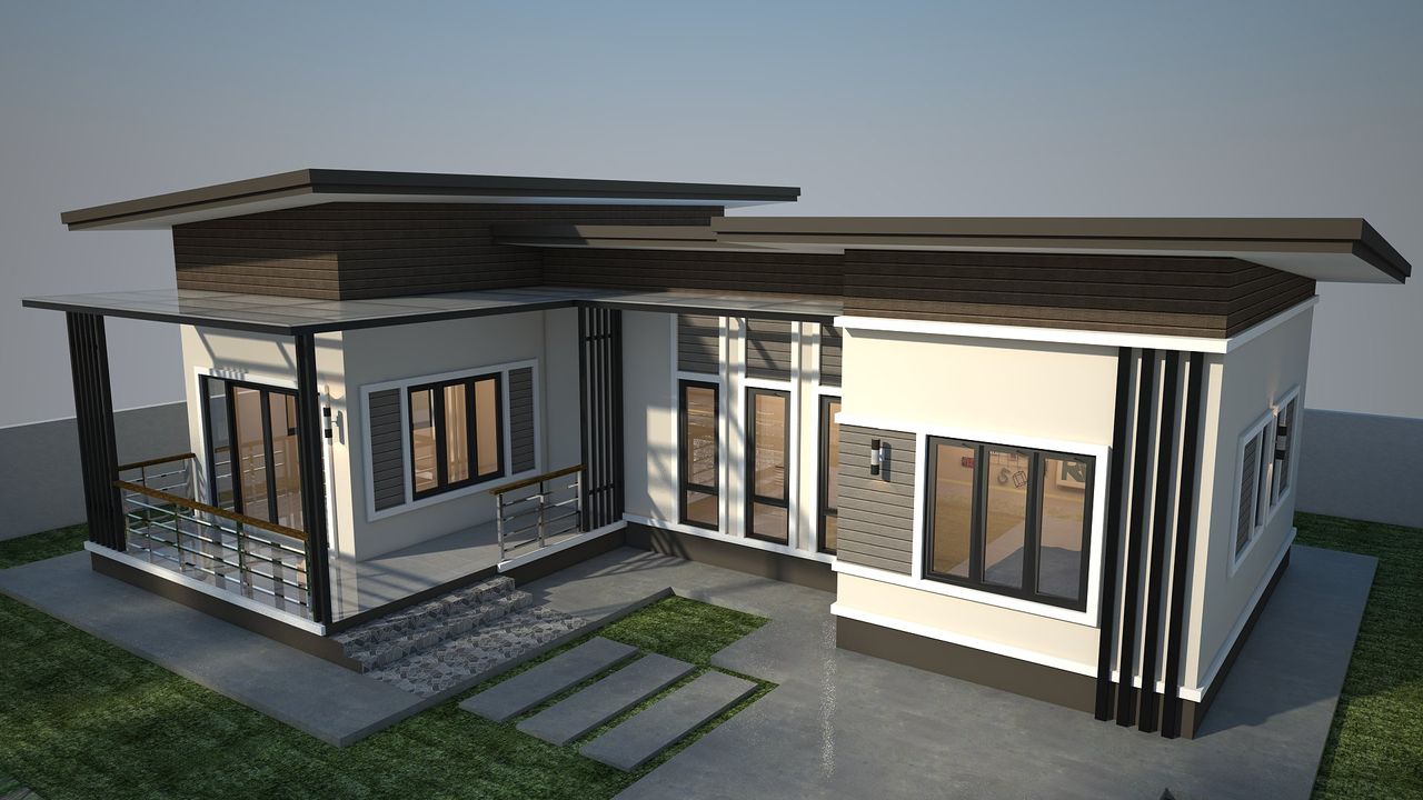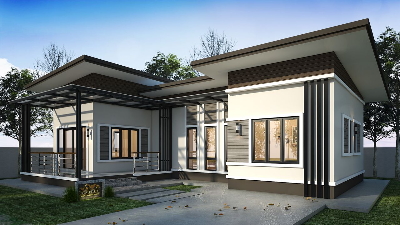 แบบบ้านGHP338 โมเดิร์น ฟังก์ชั่น : 1 ชั้น 3 ห้องนอน 2 ห้องน้ำ 1 ห้องครัว 1 ห้องรับแขก 1 จอดรถ