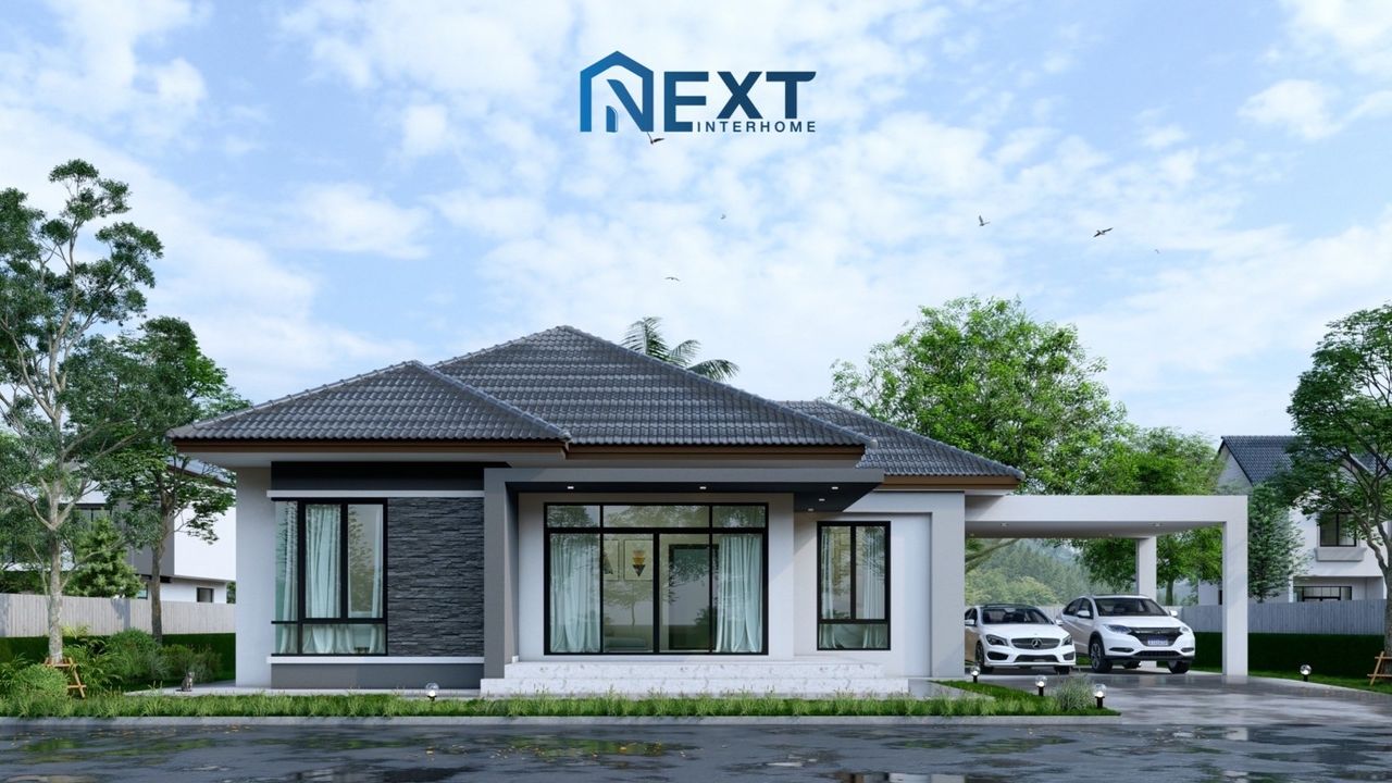 แบบบ้านพร้อมก่อสร้าง : บ้าน 1 ชั้น 2 ห้องนอน 2 ห้องน้ำ 2 ที่จอดรถ
