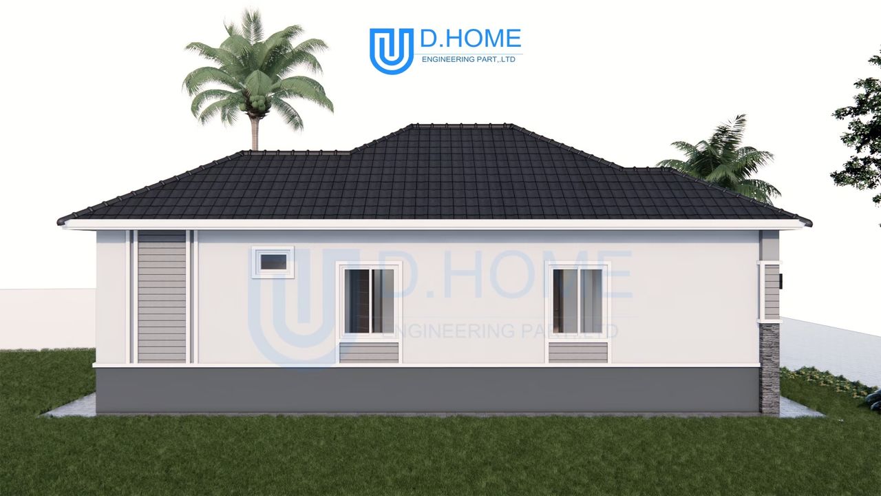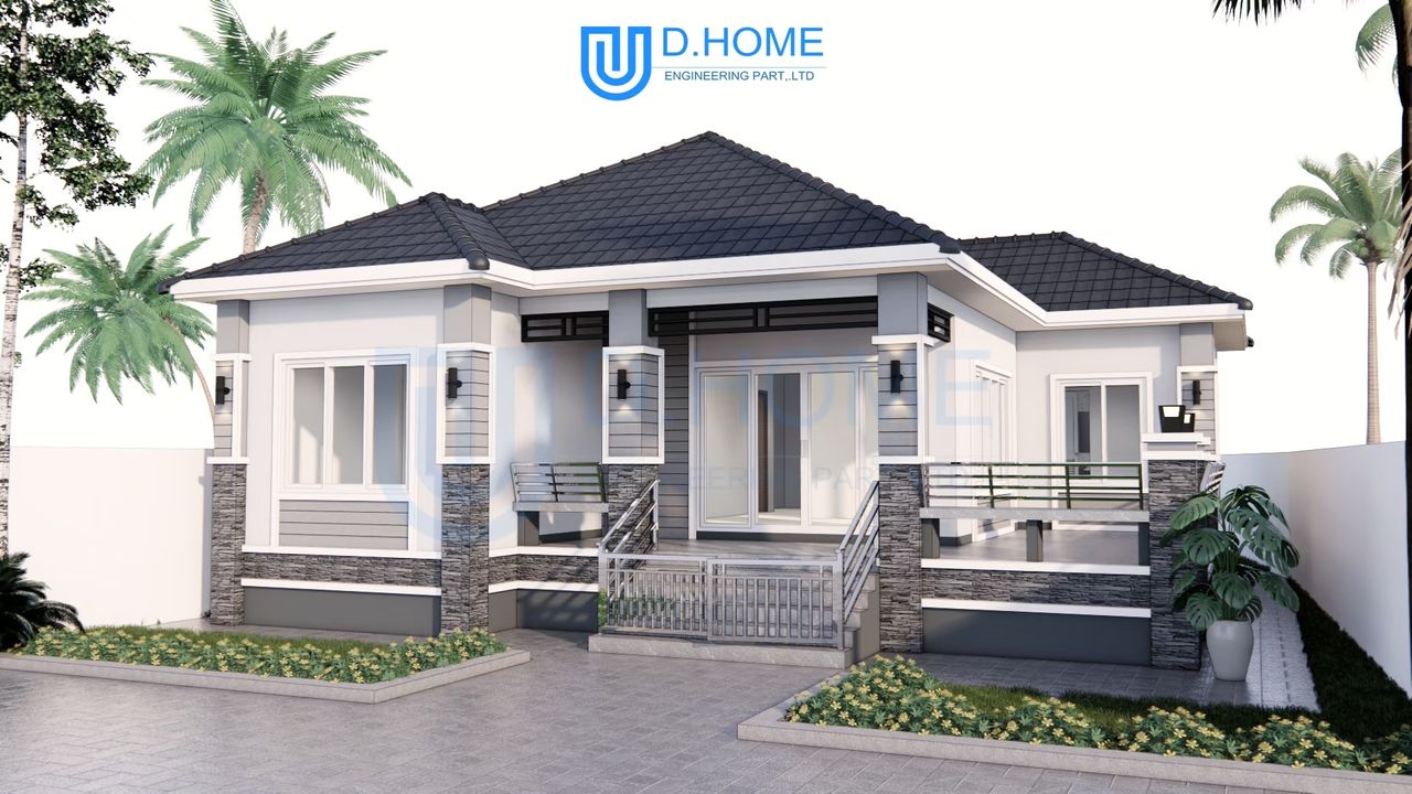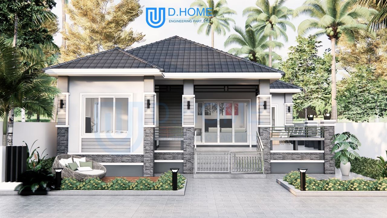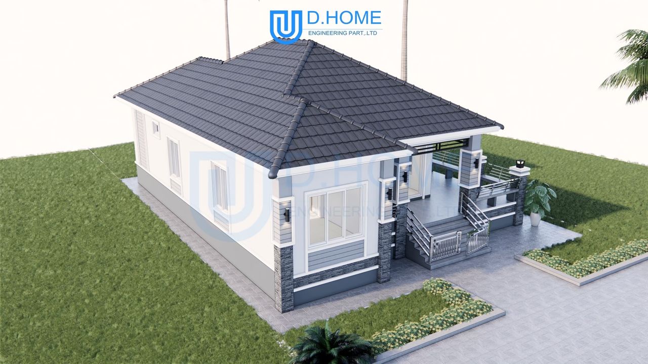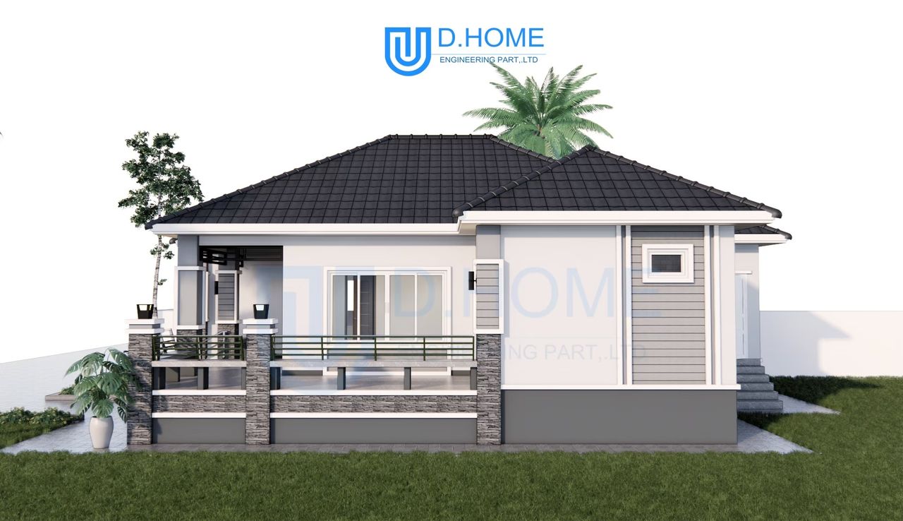 แบบบ้านพร้อมก่อสร้าง : บ้าน 1 ชั้น 3 ห้องนอน 2 ห้องน้ำ 1 ห้องรับแขก 1 ห้องครัว
