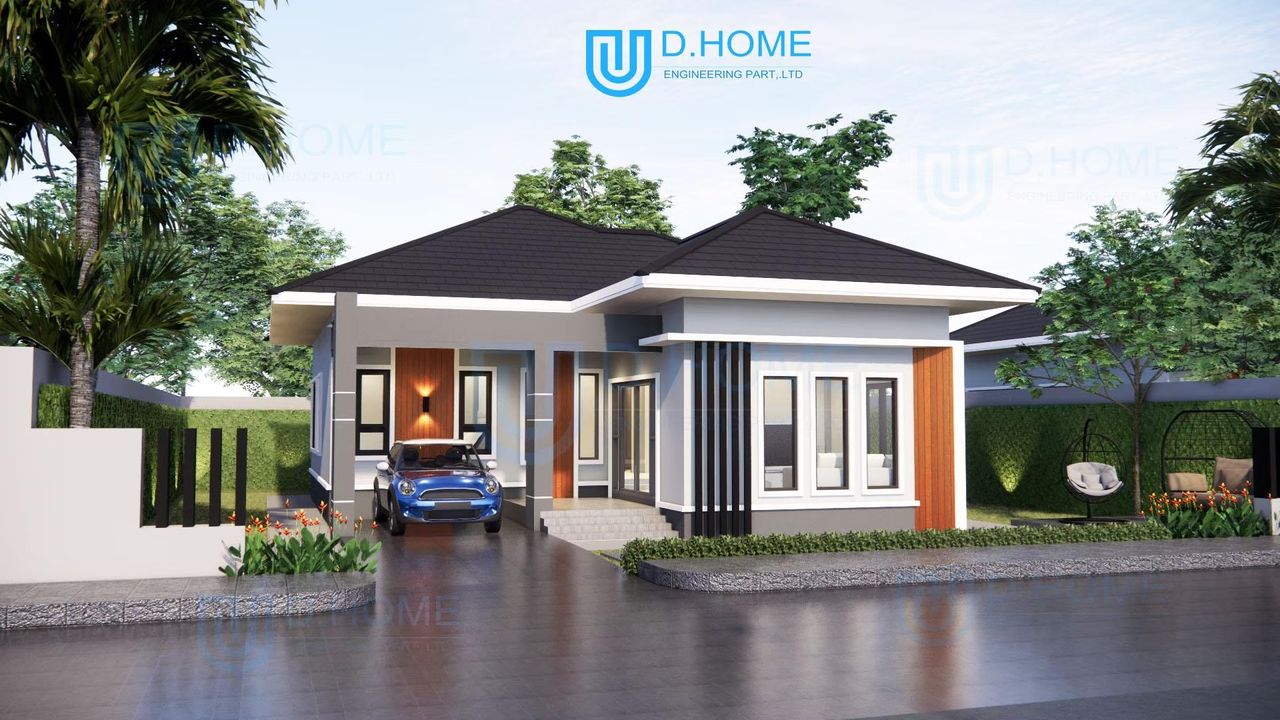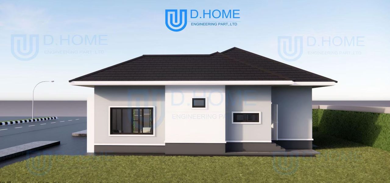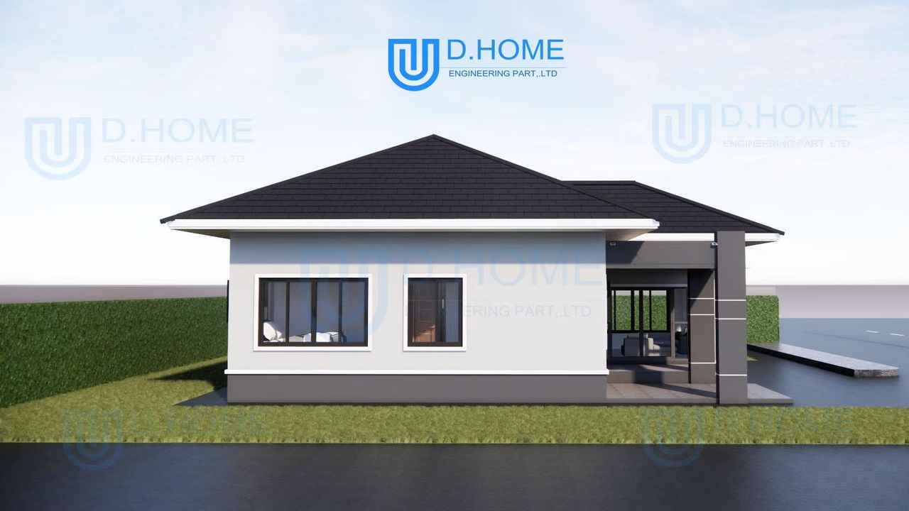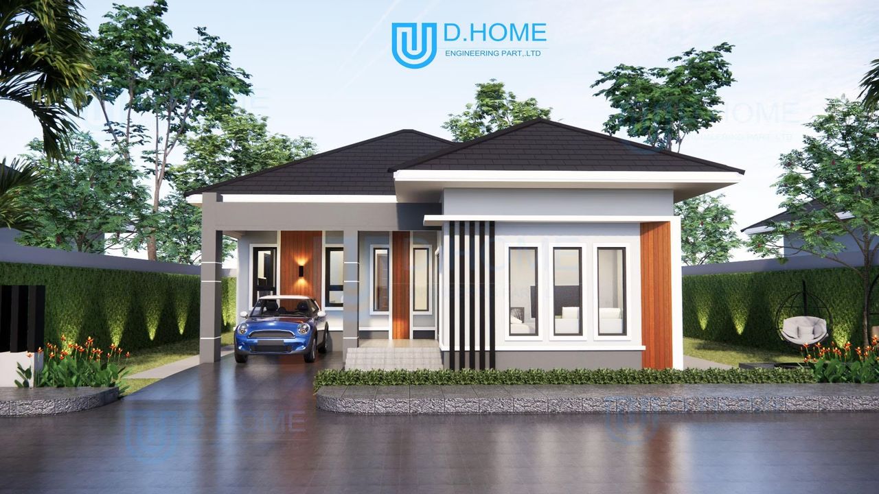 แบบบ้านพร้อมก่อสร้าง : บ้าน 1 ชั้น 3 ห้องนอน 2 ห้องน้ำ 1 ห้องรับแขก 1 ห้องครัว 1 ที่จอดรถ