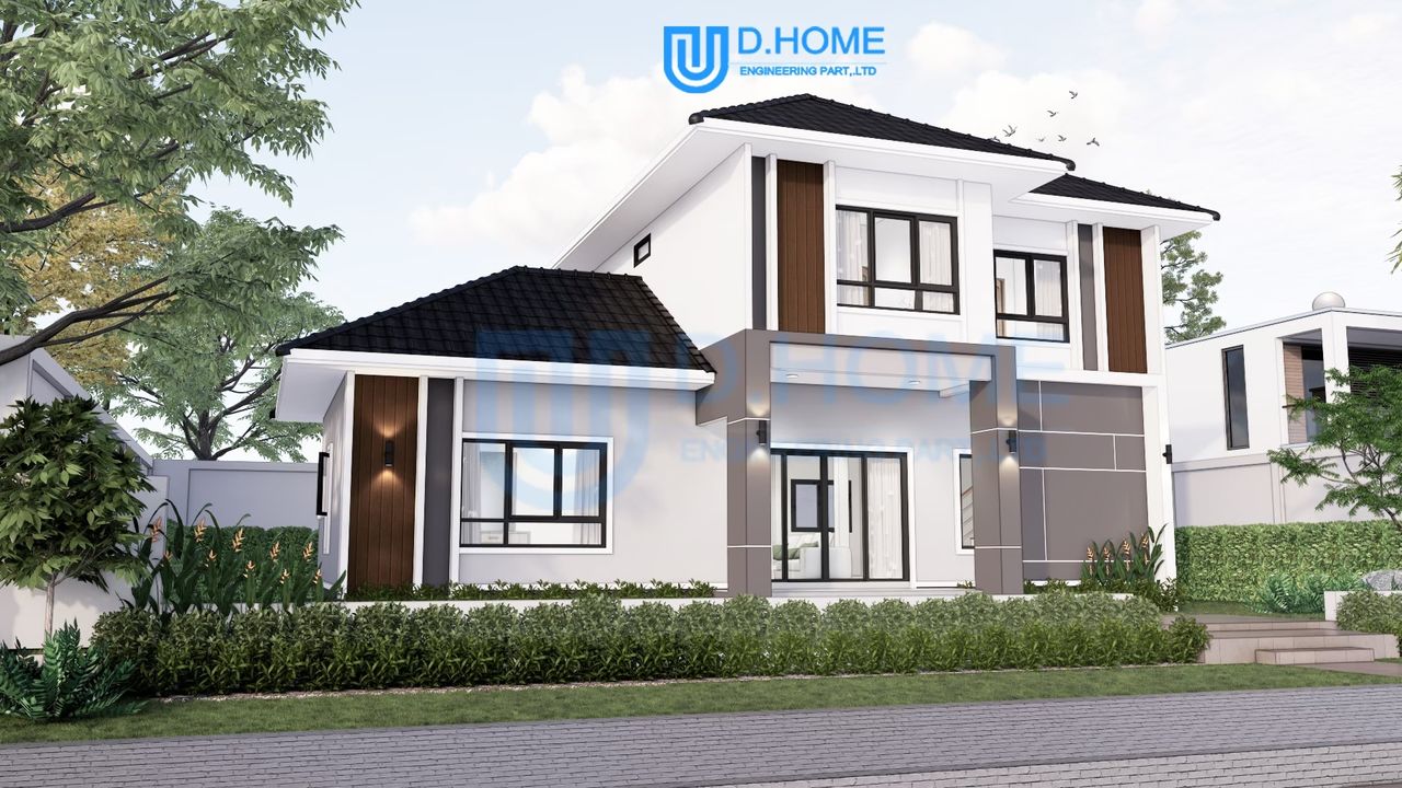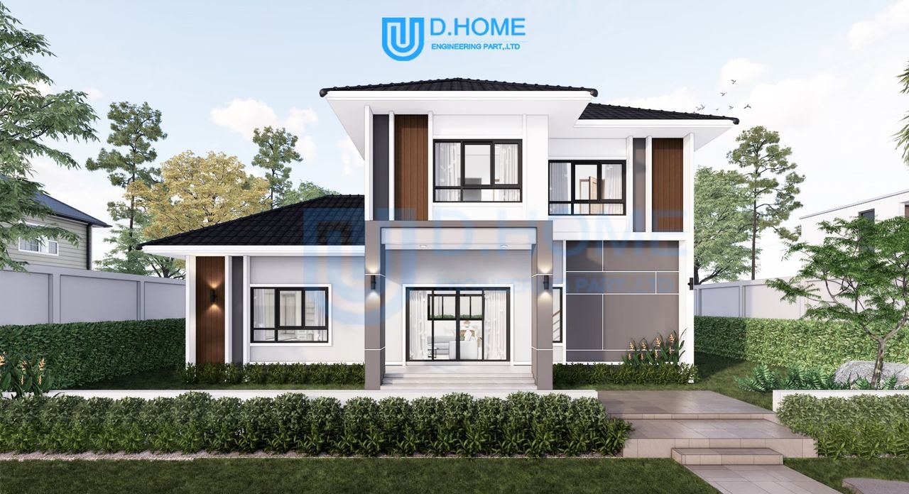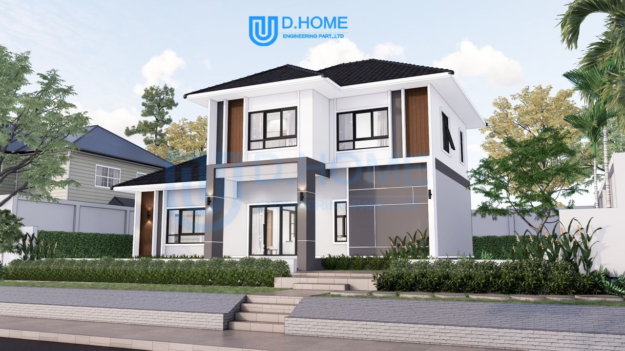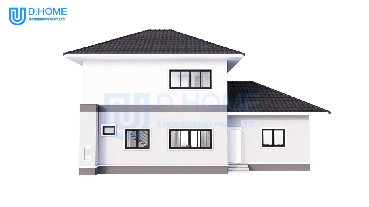 แบบบ้านพร้อมก่อสร้าง : บ้าน 2 ชั้น 3 ห้องนอน 2 ห้องน้ำ 1 ห้องรับแขก 1 ห้องครัว