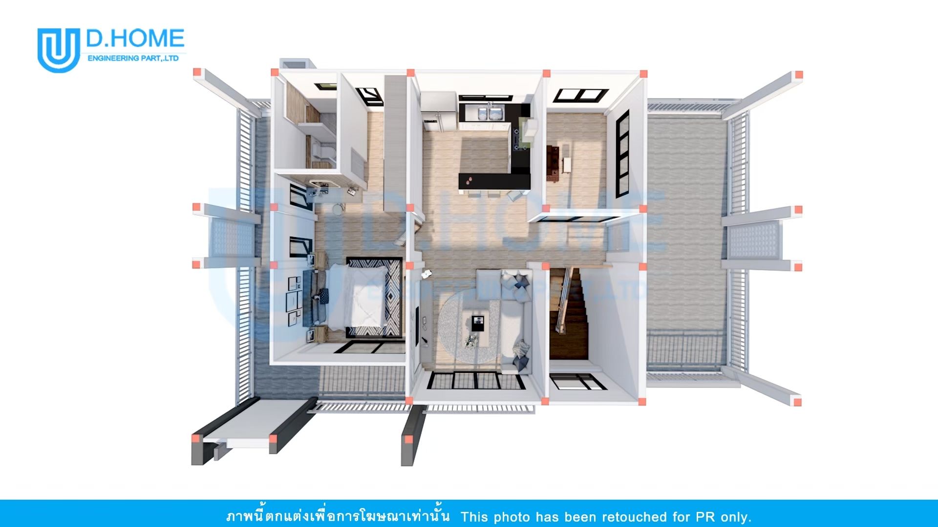 แบบบ้านพร้อมก่อสร้าง : บ้าน 2 ชั้น 3 ห้องนอน 4 ห้องน้ำ 2 ห้องรับแขก 2 ห้องครัว 1 ห้องพระ