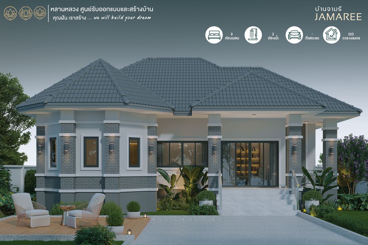 รับสร้างบ้านหลานหลวง บ้านชั้นเดียวสไตล์ โมเดิร์นคอนเทมโพรารี่ 3 ห้องนอน 2 ห้องน้ำ ชื่อแบบบ้านจามรี