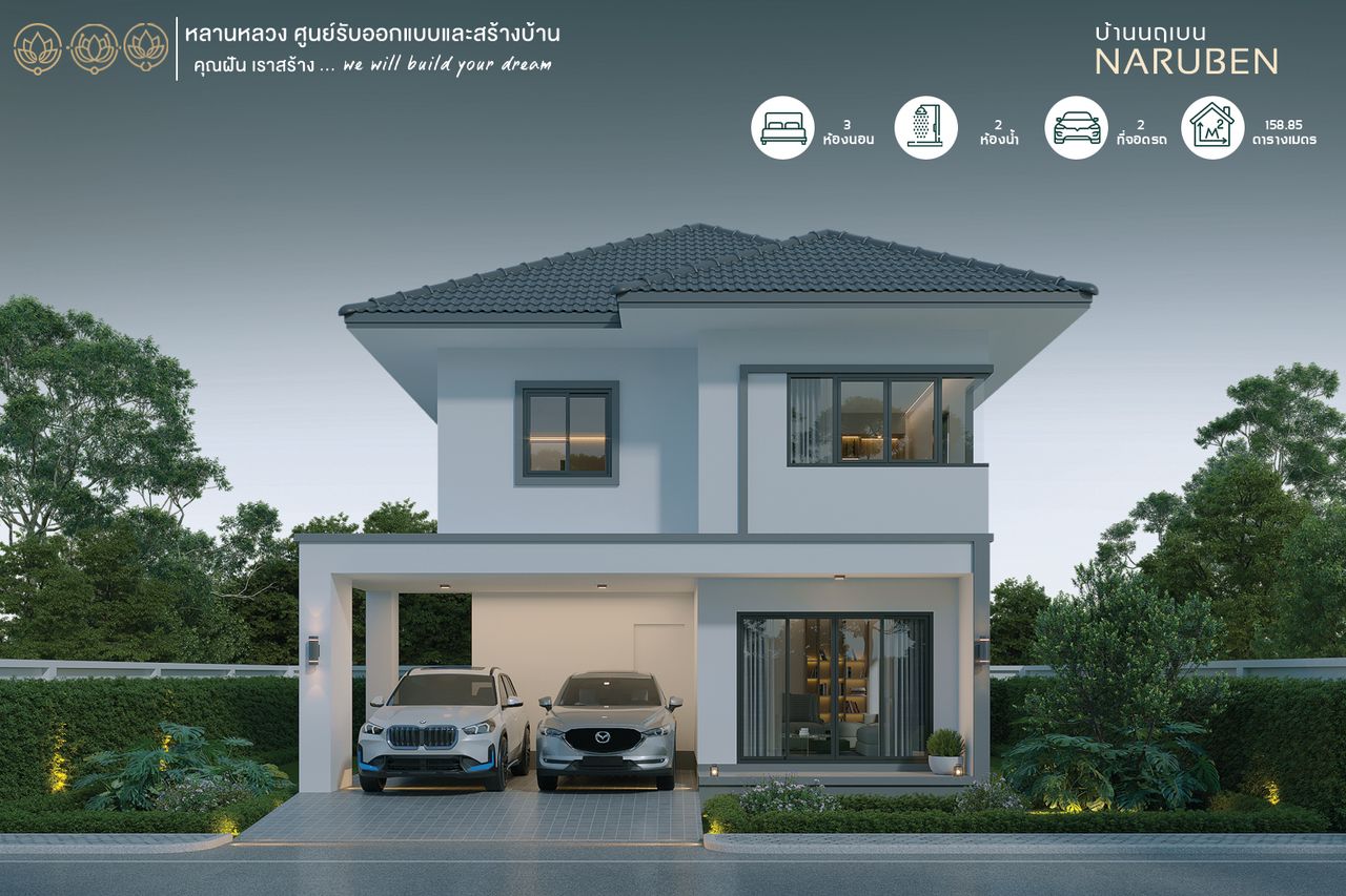 รับสร้างบ้านหลานหลวง บ้านสไตล์คอนเทมโพรารี่ 3 ห้องนอน 2 ห้องน้ำ ชื่อแบบบ้านนฤเบน