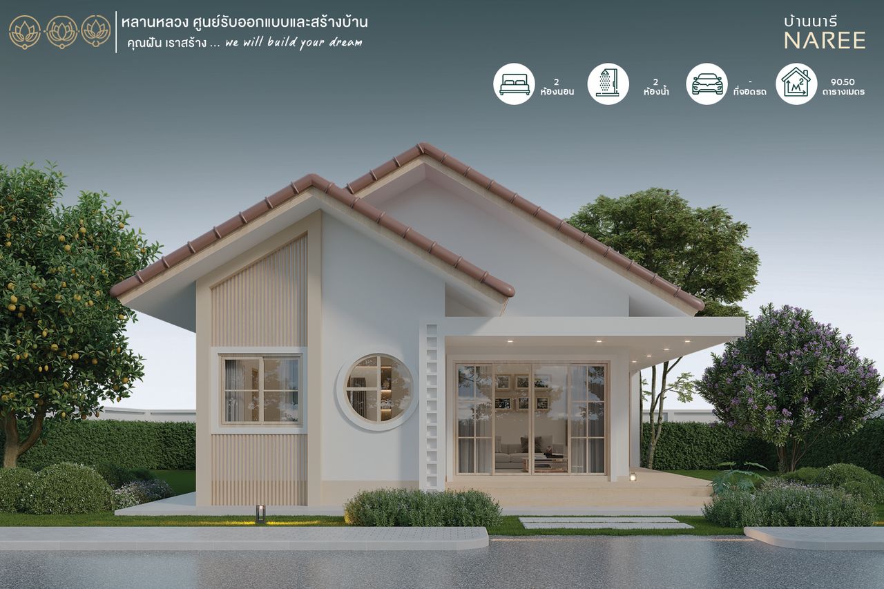 รับสร้างบ้านหลานหลวง บ้านชั้นเดียวสไตล์ สไตล์นอร์นิกมินิมอล 2 ห้องนอน 2 ห้องน้ำ ชื่อแบบบ้านนารี