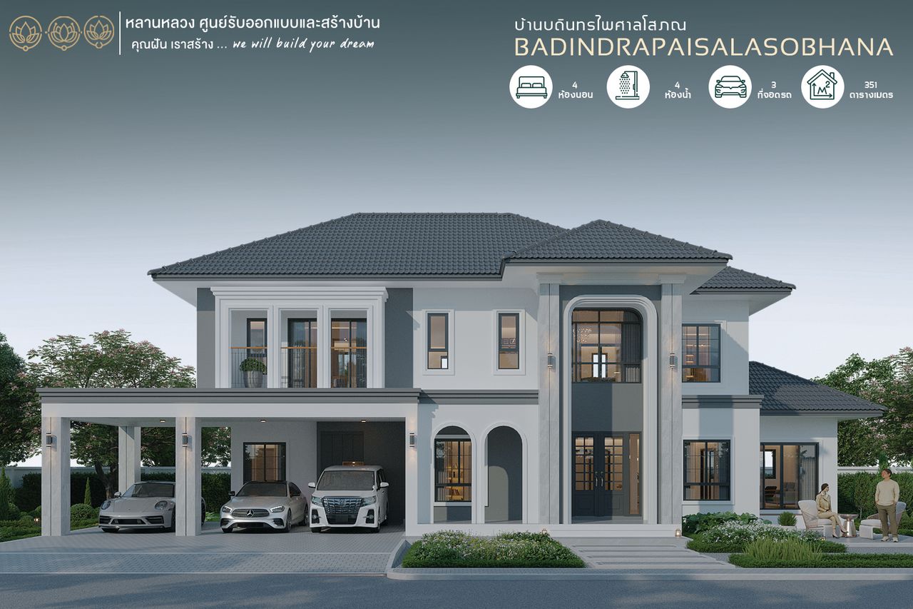 รับสร้างบ้านหลานหลวง บ้าน2ชั้น สไตล์นีโอคลาสสิค ชื่อแบบบ้านบดินทรไพศาลโสภณ