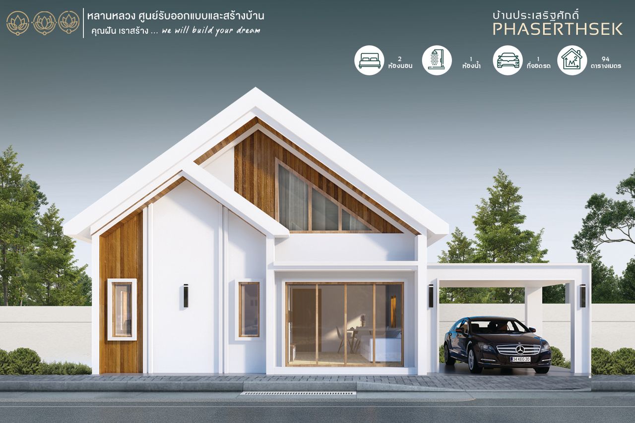 รับสร้างบ้านหลานหลวง บ้านชั้นเดียว สไตล์นอร์ดิก 2 ห้องนอน 1 ห้องน้ำ ชื่อแบบบ้านประเสริฐศักดิ์