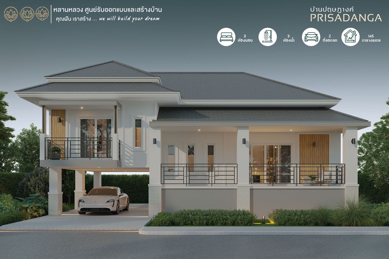 รับสร้างบ้านหลานหลวง บ้านสองสไตล์คอนเทมโพรารี่ 4 ห้องนอน 3 ห้องน้ำ ชื่อแบบบ้านปฤษฎางค์