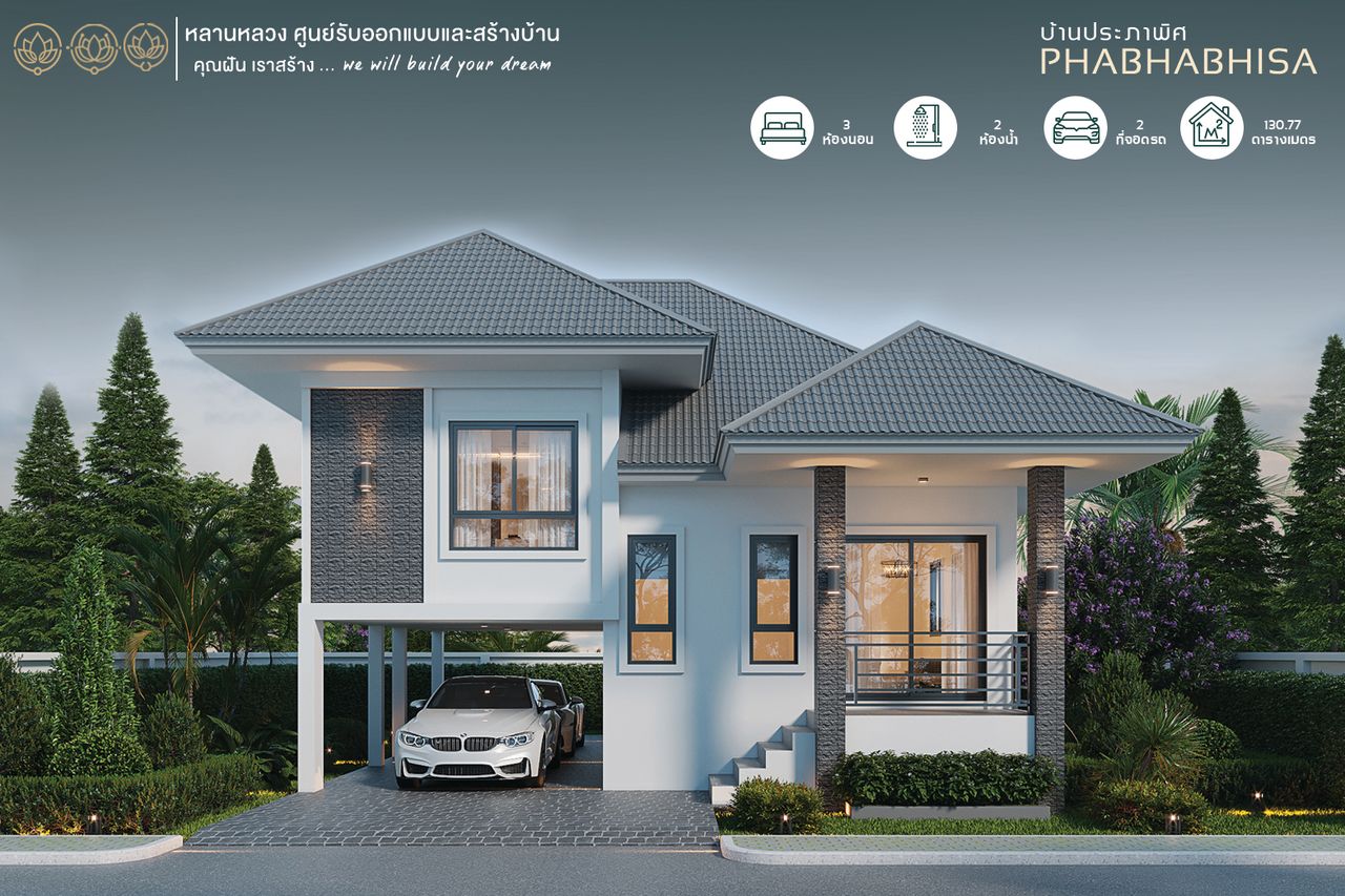 รับสร้างบ้านหลานหลวง บ้านสองสไตล์คอนเทมโพรารี่ 3 ห้องนอน 2 ห้องน้ำ ชื่อแบบบ้านประภาพิศ