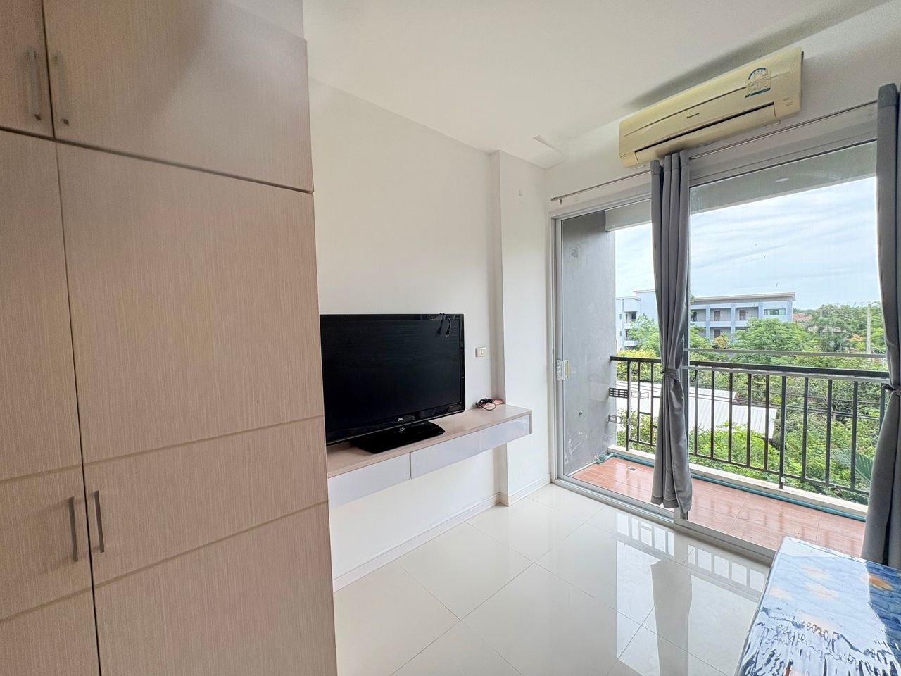 ✅ เตียง 5 ฟุต, ตู้เสื้อผ้า Built-in, โต๊ะทำงาน