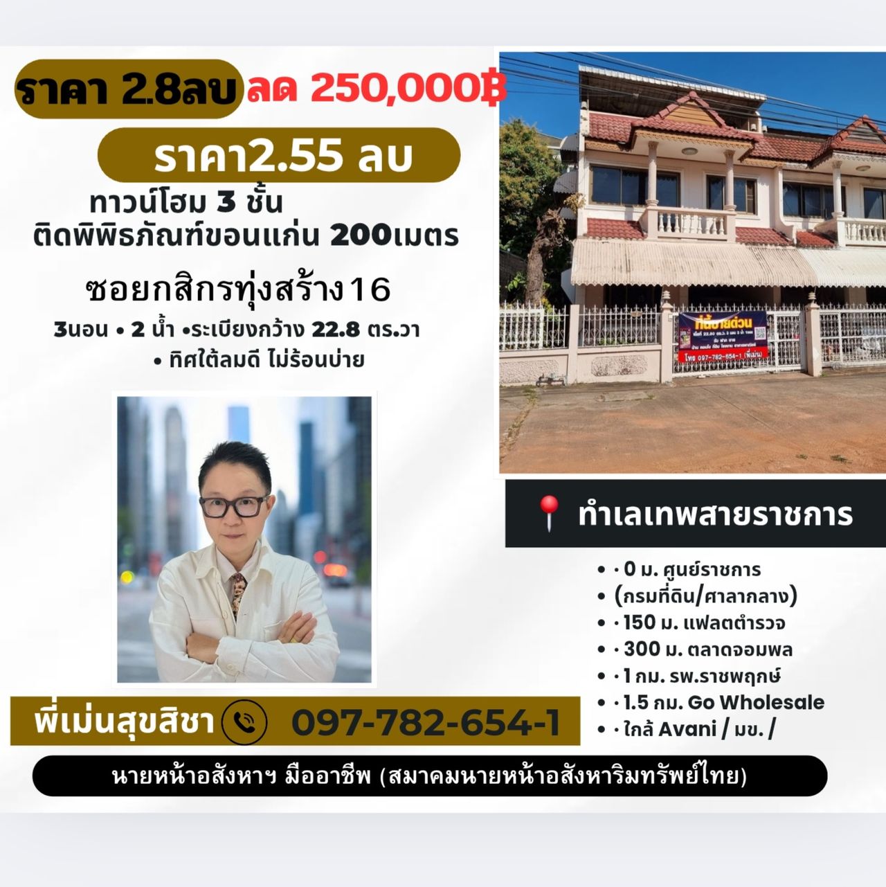 🚨 ทาวน์โฮม 3 ชั้น ขอนแก่น – 0 ม. ติดพิพิธภัณฑสถานขอนแก่น/กรมที่ดิน/ศาลากลาง
