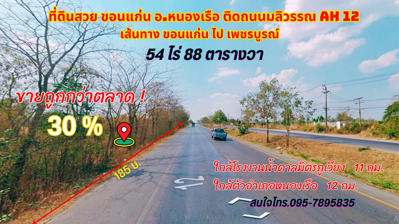 ขายที่ดินขอนแก่น 54ไร่ 88ตรว. ทำเลทองติดถนนมลิวรรณ เส้นทางขอนแก่น ไป เพชรบูรณ์