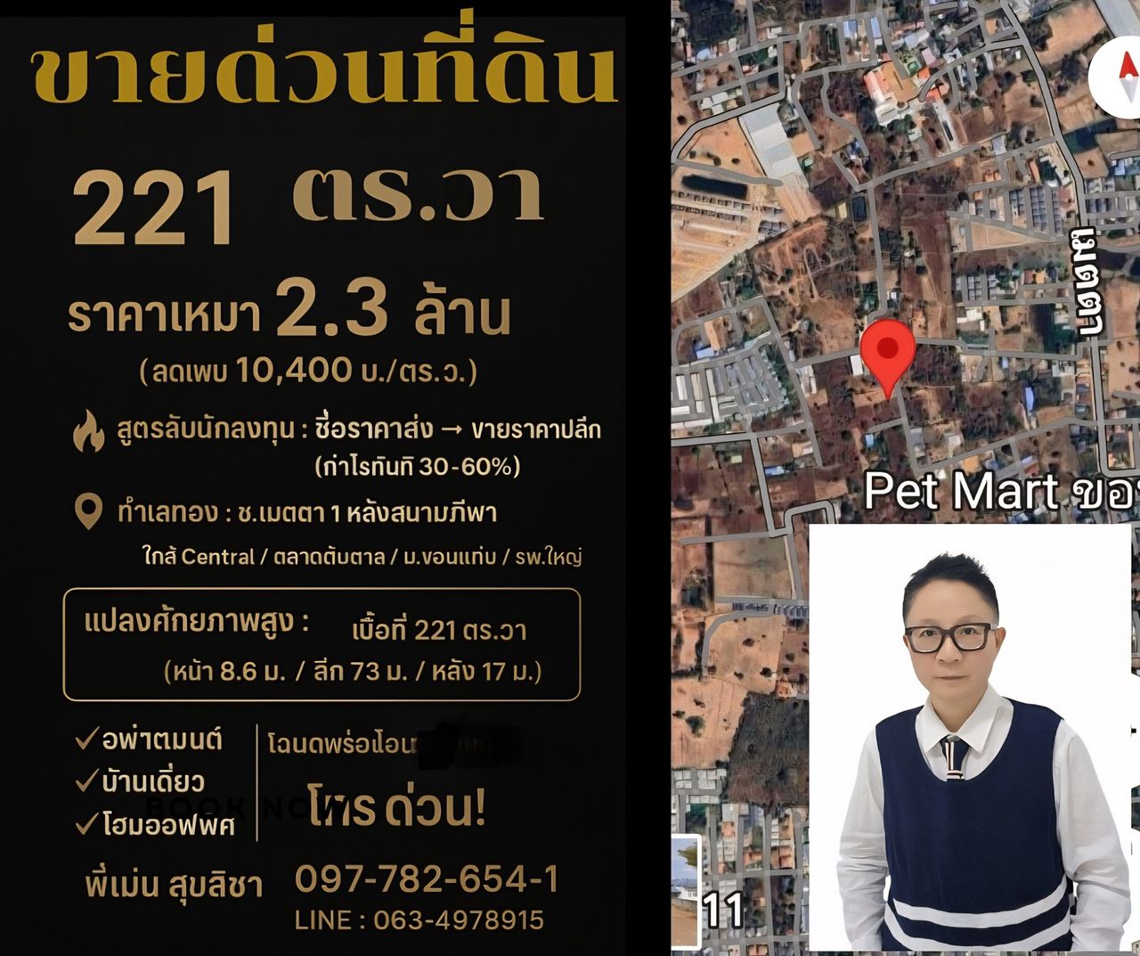 ที่ดิน 221 ตร.ว. กลางเมืองขอนแก่น! "กำไรทันที 30–60%" 2.3 ล้าน!