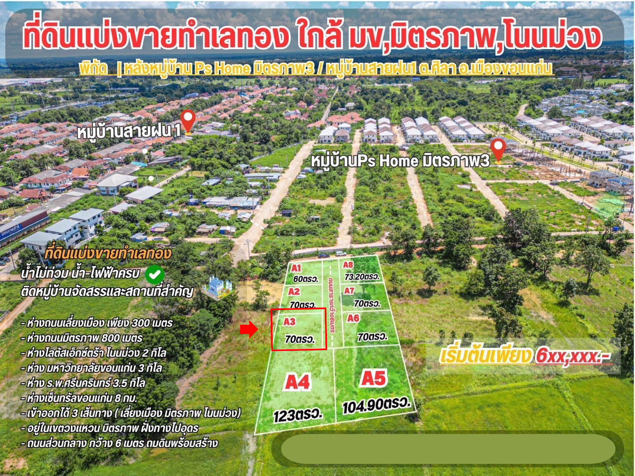 ✅ เข้าออกได้ 3 เส้นทาง (เลี่ยงเมือง, มิตรภาพ,โนนม่วง)
