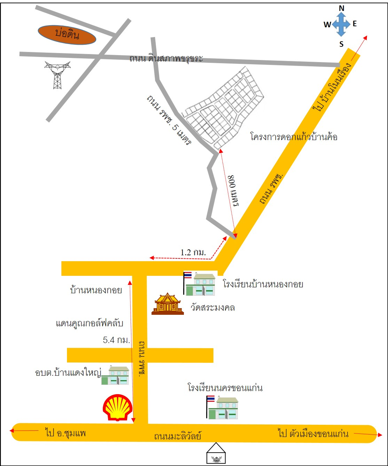 ที่ตั้ง : ตั้งอยู่ภายในโครงการจัดสรร "โครงการดอกแก้วบ้านค้อ" แยกห่างจากถนนมะลิวัลย์ประมาณ 7.5 กม. ตำบลบ้านค้อ ผ่านบ้านแดงใหญ่ ไปยังบ้านหนองกอย ห่างจากบ้านหนองกอย 2 กม.