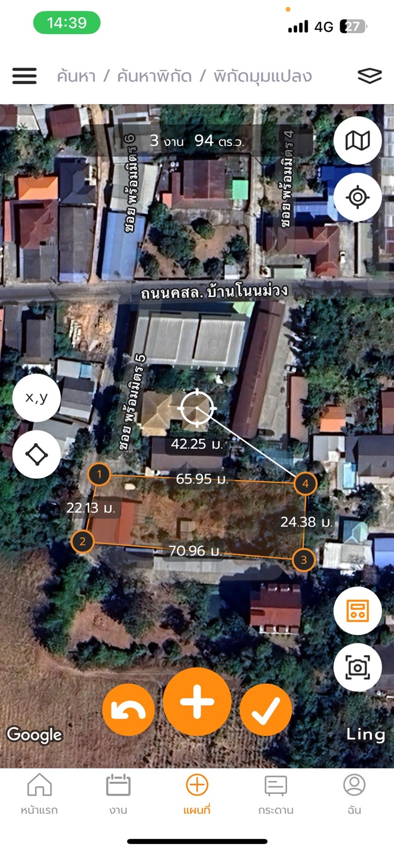 3 งาน 94 ตารางวา (กว้าง 22 ม. ลึก 65 ม.)