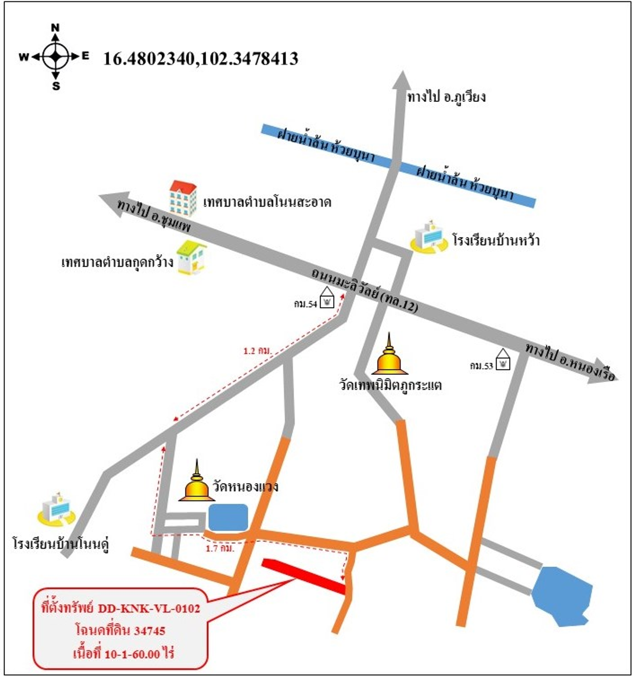 ที่ตั้ง : ตั้งอยู่ชุมชนบ้านหนองแวง แยกจากถนนมะลิวัลย์ (ทล.12) ประมาณ 3 กม.
