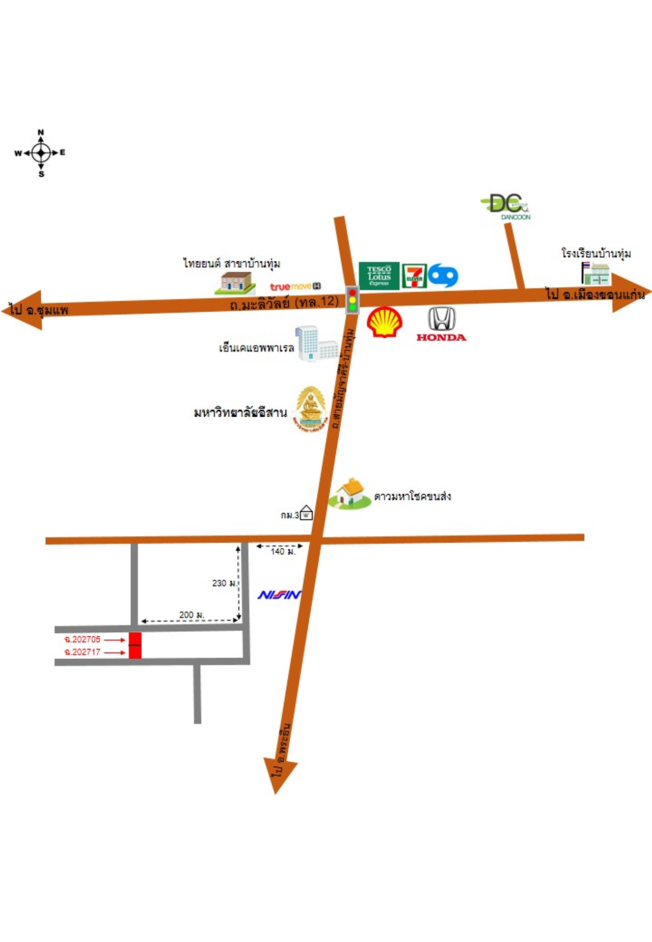 ที่ตั้ง : ห่างจากสี่แยกบ้านทุ่ม ประมาณ 3.5 กม.
