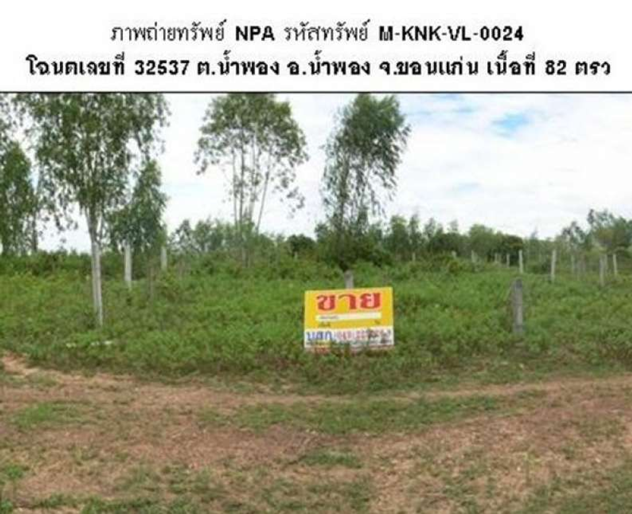 ขายที่ดินเปล่า 82ตารางวา ราคาถูกเพียง 147,000 บาท ในอำเภอน้ำพอง ตำบลน้ำพอง