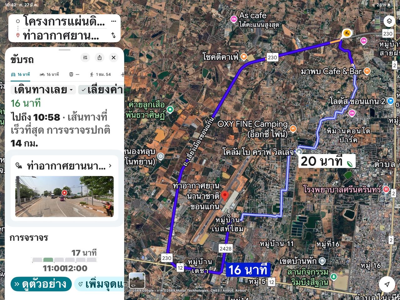 -จากรพศรีนครินทร์(ติดที่ตั้งCentral สาขา2 โดยวิ่งมาตามถนนมิตรภาพไปทางถนนเลี่ยงเมืองเพื่อไปยังที่ดินวิ่งสบายๆ วิ่งสายหลักๆ ไม่ต้องเข้าถนนโนนม่วง ระยะทางแค่7กม ใช้เวลาเพียง13นาที (ตามรูปที่ส่งไป)