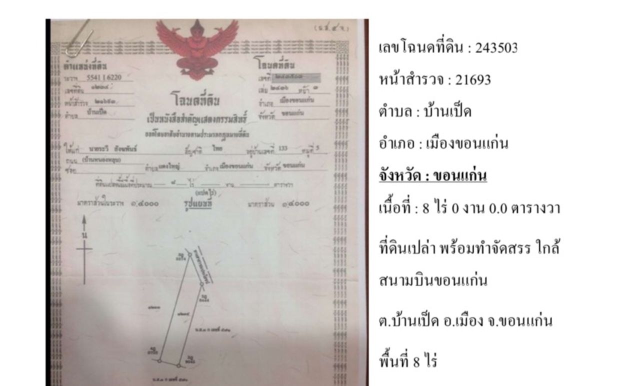 ขายที่ดินใกล้สนามบินขอนแก่น ราคาถูกสุดๆ ไร่ละ 3 ล้าน รับนายหน้า