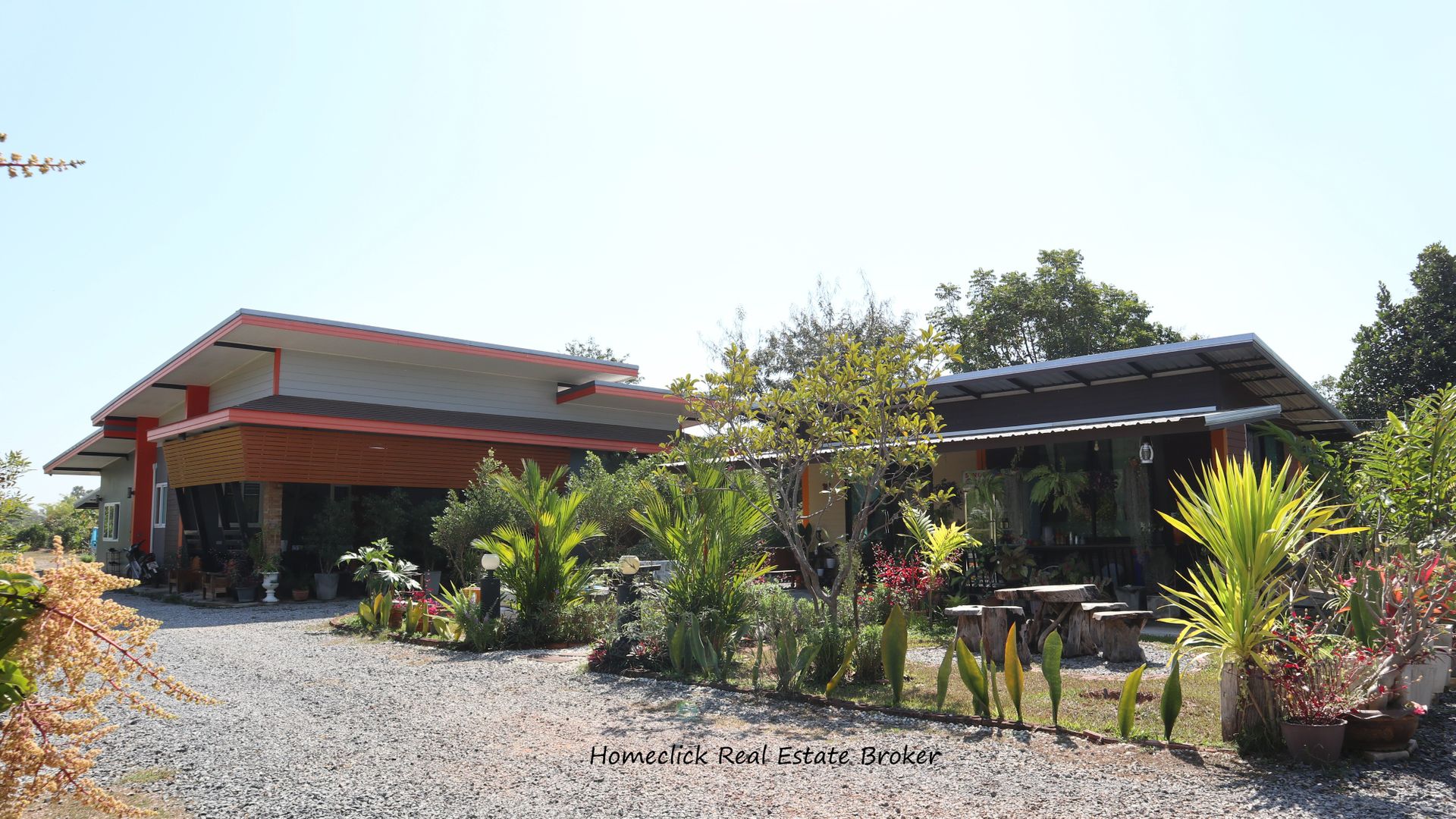 ขายบ้านสวนเพิ่งสร้างได้ 3 ปี เจ้าของอยู่เอง ปลูกพืชผักสวนครัว ต้นไม้ร่มรื่นรอบ ๆ บ้านจัดสวน และอาคารทำเป็นร้านกาแฟ ร้านอาหารเล็ก ๆ หน้าบ้าน