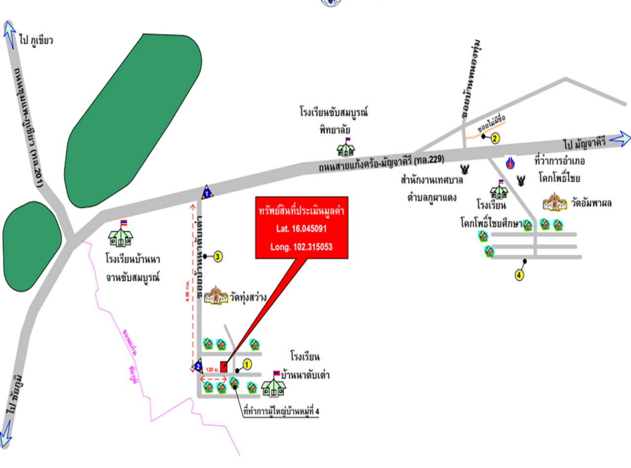 ที่ตั้ง : จากถนนสายแก้งคร้อ - มัญจาคีรี (ทล.229) เลี้ยวเข้าซอยบ้านนาตับเต่า ไปประมาณ 4 กม. แล้วเลี้ยวซ้ายตรงไปประมาณ 120 ม. ถึงที่ตั้งทรัพย์