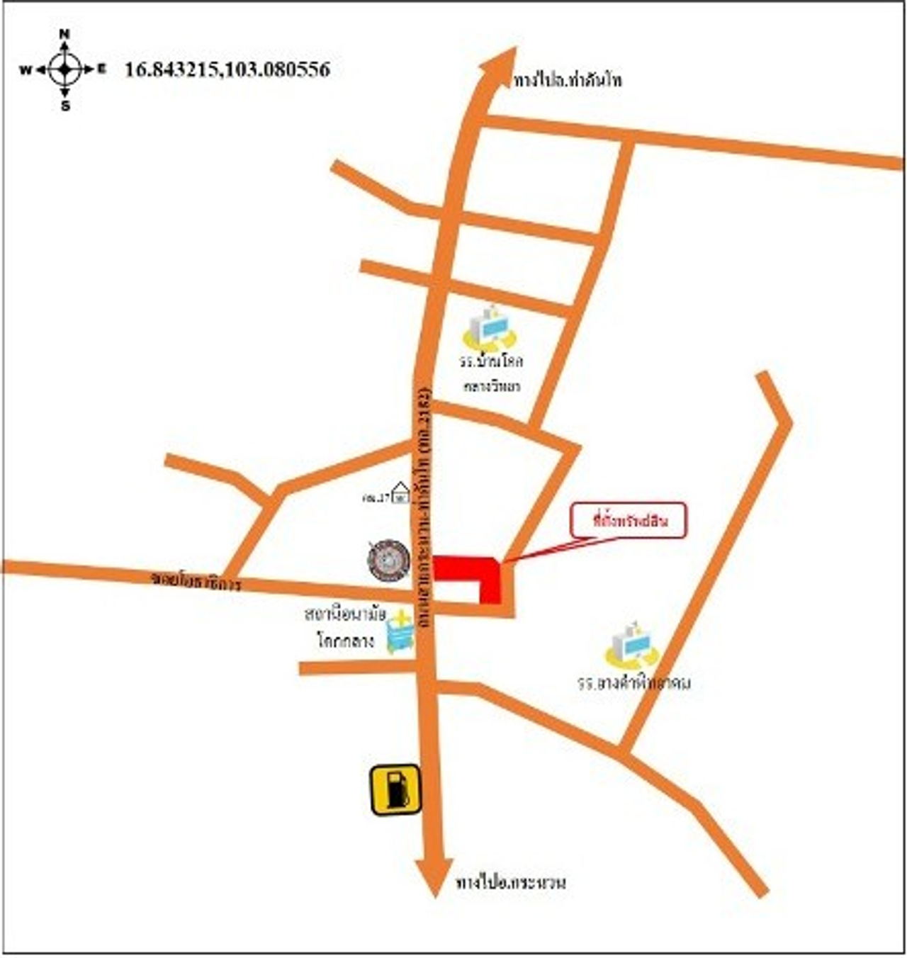 ที่ตั้ง : ทรัพย์ตั้งอยู่ติดถนน 3 ด้าน ถนนสายกระนวน - ท่าคันโท (ทล.2322) และอยู่ติดซอยภายในชุมชนหมู่ 8
