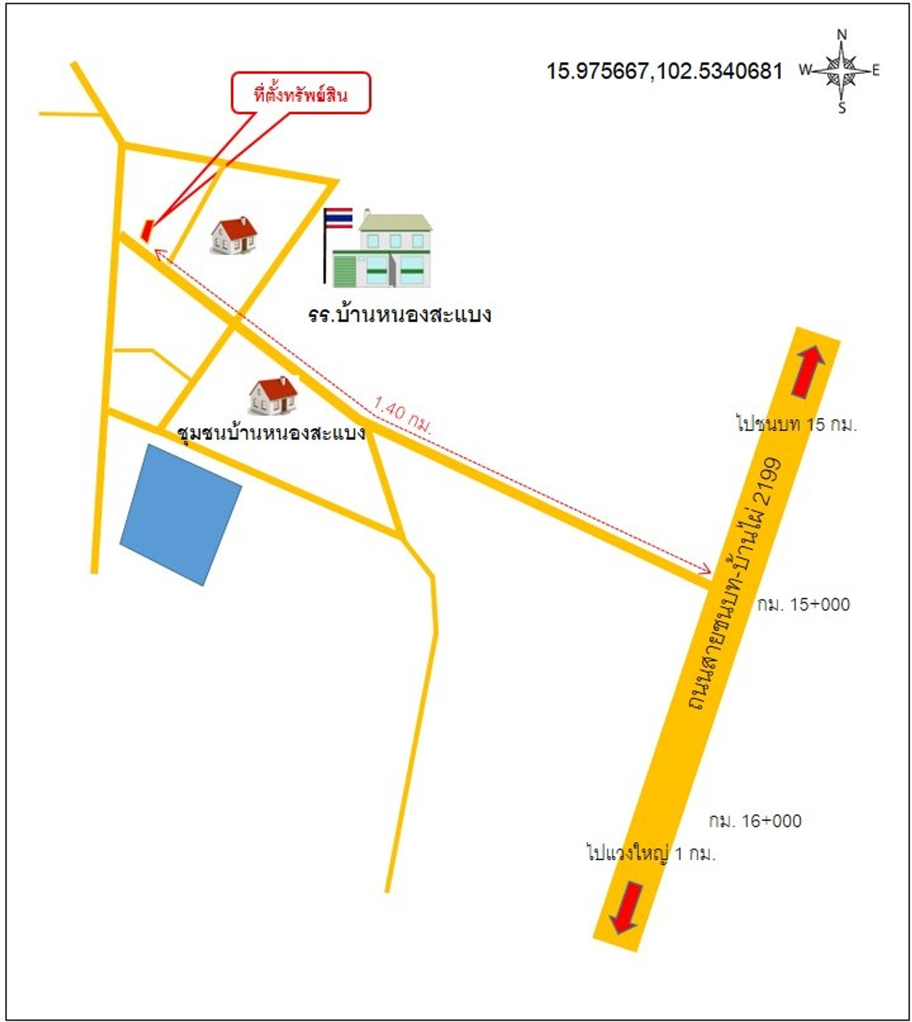 ที่ตั้ง : ตั้งอยู่ในชุมชนบ้านหนองสะแบง ห่างจากถนนสายชนบท-บ้านไผ่ (2199) ประมาณ 1.4 กม.