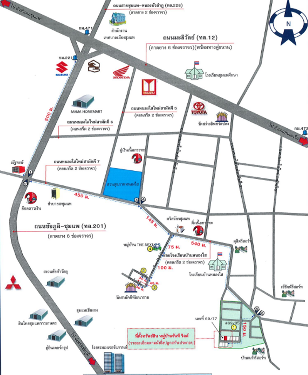 ที่ตั้ง : จากถนนมะลิวัลย์เลี้ยวซ้ายเข้าสู่ถนนหนงใสใหม่สามัคคี 3 ตรงไปตามเส้นทาง แยกที่สี่เลี้ยวซ็ายเข้าสู่หมู่บ้านจันทีวิลล์