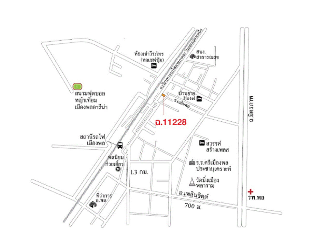 ที่ตั้ง : บ้านเลขที่ 11/7 ถนนเลียบทางรถไฟสายตะวันออกเฉียงเหนือ ตำบลเมืองพล อำเภอพล จังหวัดขอนแก่น