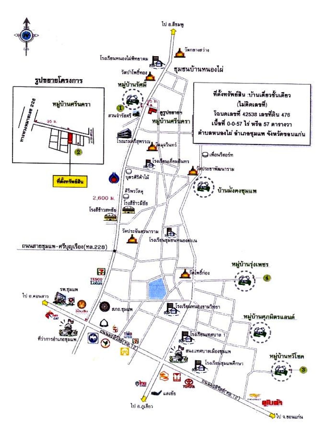 ขายบ้านเดี่ยว 1 ชั้น ในโครงการศรีนครา ราคา 1.52 ล้านบาท ในอำเภอชุมแพ