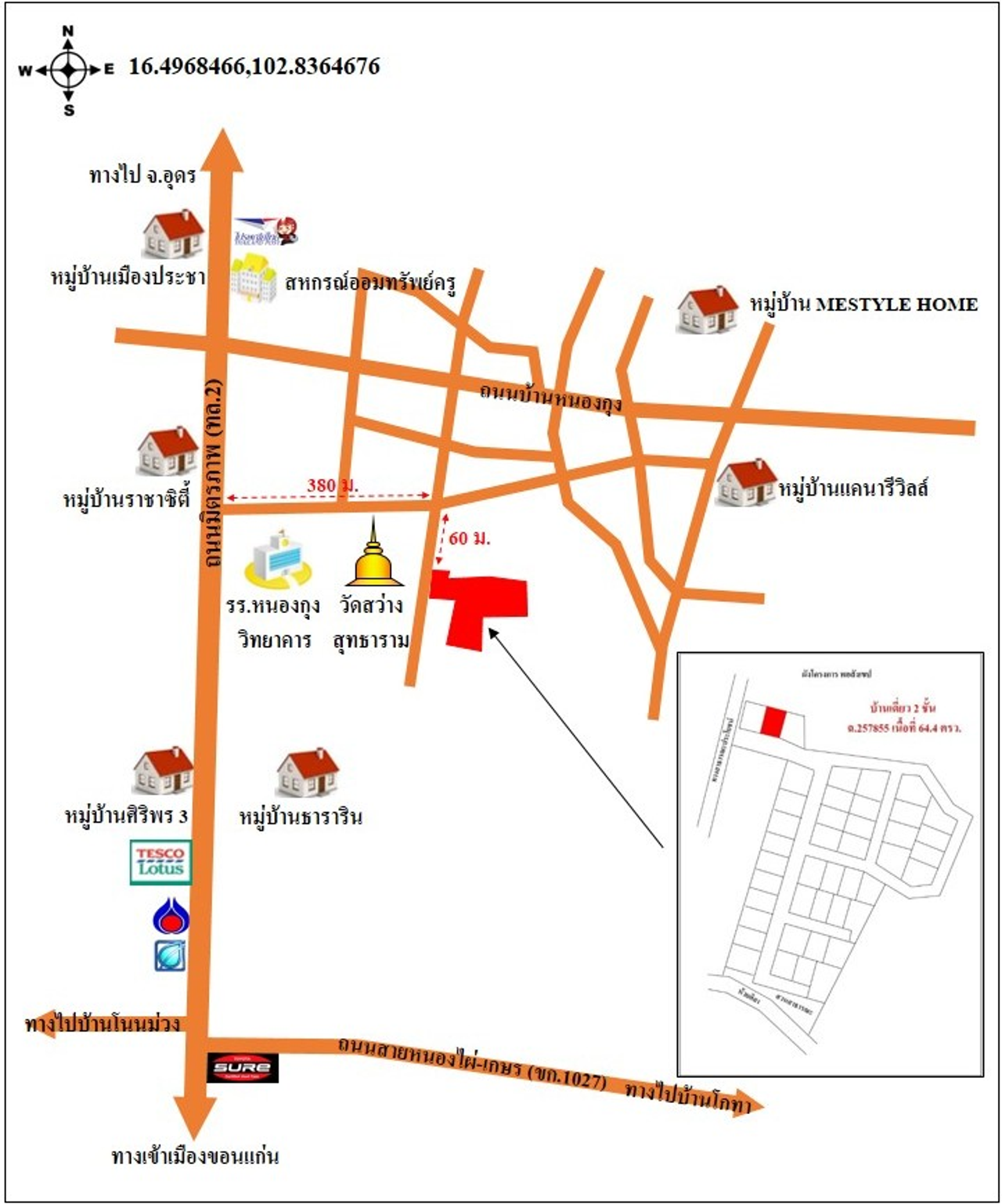 ที่ตั้ง : เลขที่ 833/2 ตั้งอยู่ภายในโครงการหมู่บ้าน PS HOME หนองกุง ห่างจากถนนมิตรภาพ (ทล.2) ประมาณ 400 ม.