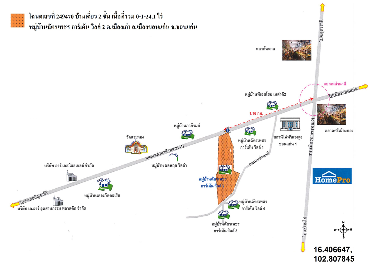 ที่ตั้ง : ถนนเหล่านาดี อยู่ภายในหมู่บ้านฉัตรเพชร การ์เด้น วิลล์ 2 เลขที่ 999/25 ซอย 13 ตำบลเมืองเก่า อำเภอเมืองขอนแก่น จังหวัดขอนแก่น