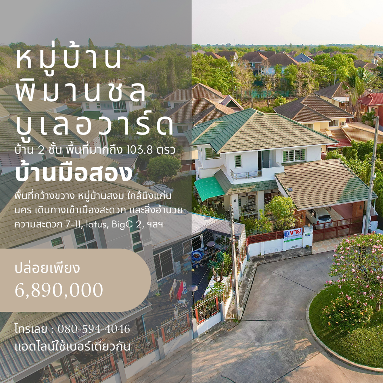🏡 ขายบ้านในเมือง ทำเลดี พิมานชลบูเลอวาร์ด ติดบึงแก่นนคร