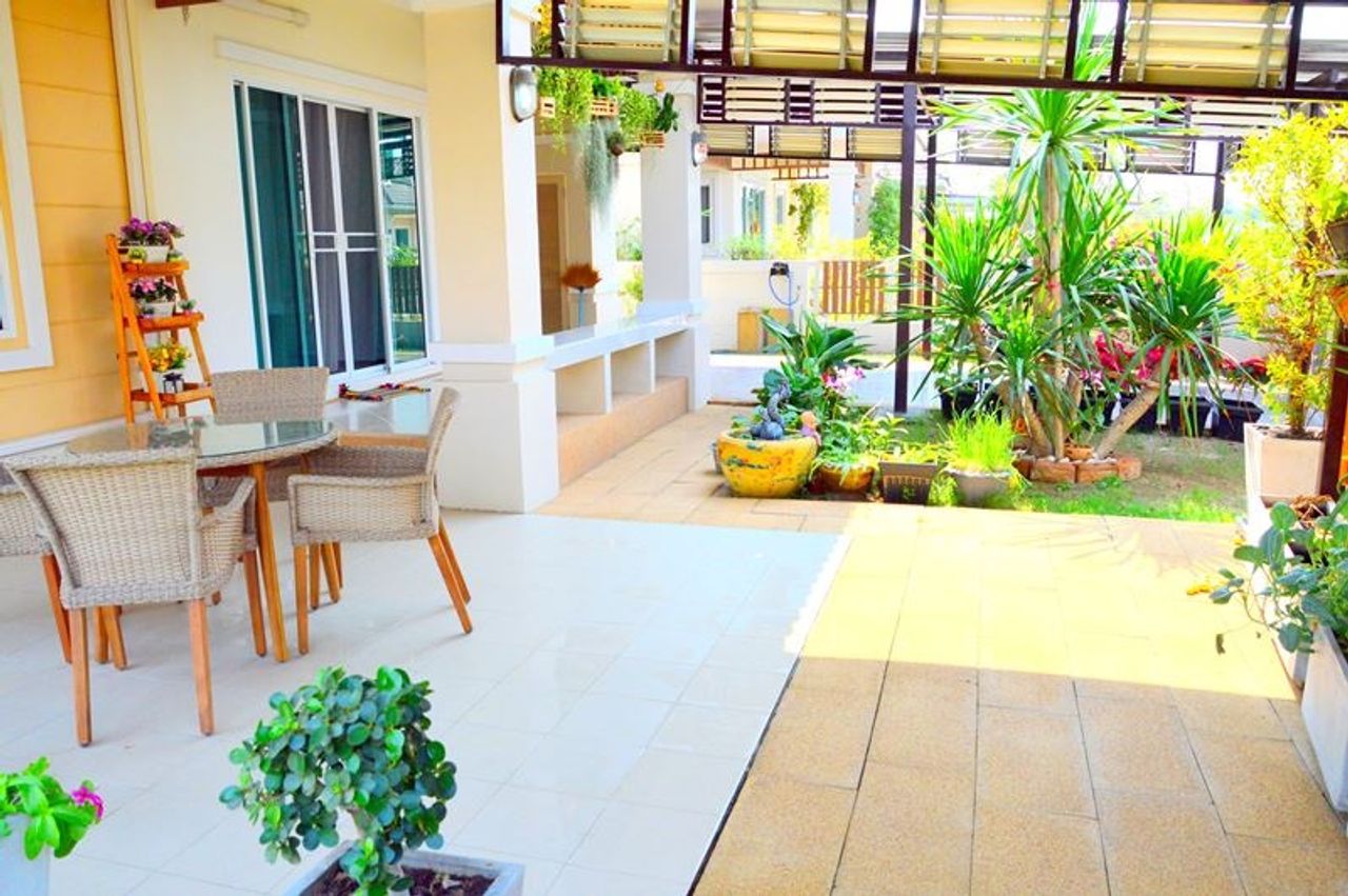 - ปูพื้นชานนั่งเล่นหน้าบ้าน