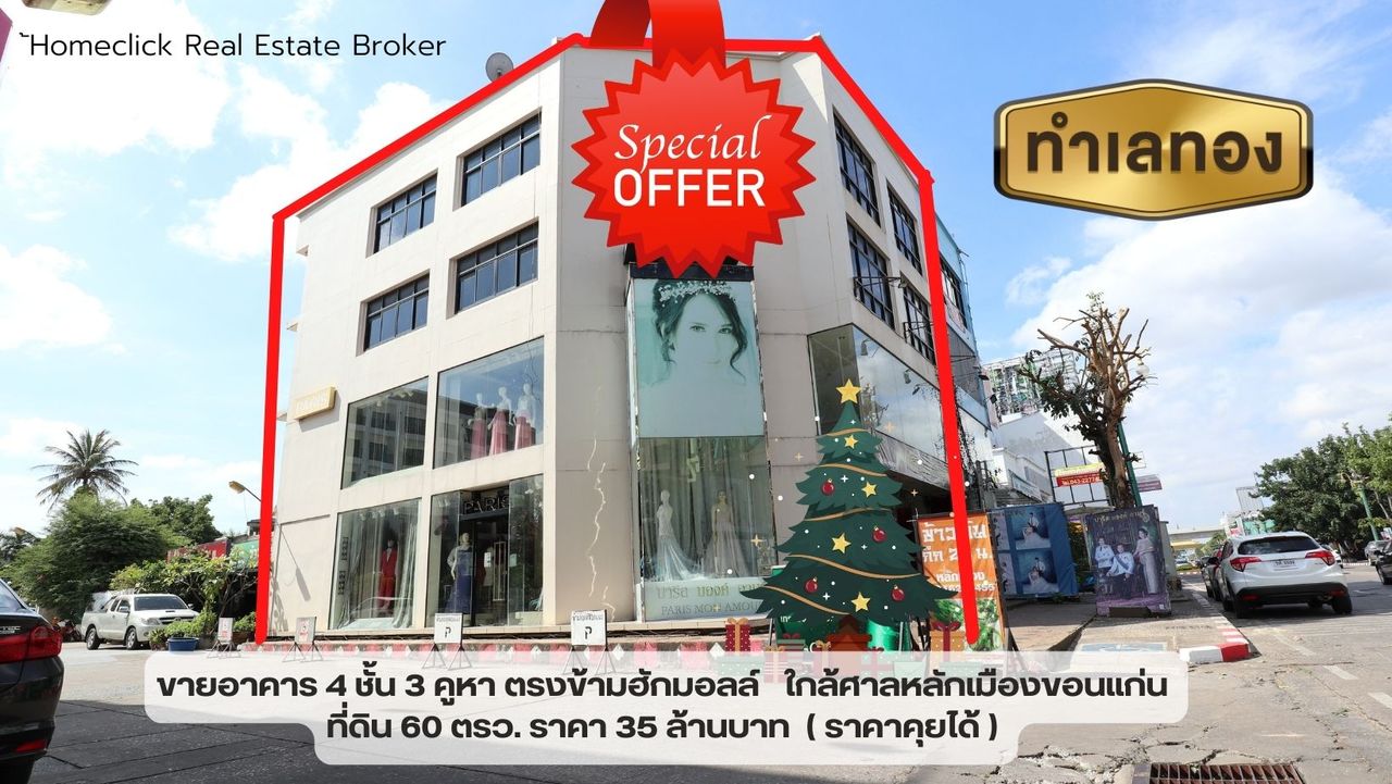อาคารพาณิชย์ 4 ชั้น ขนาดใหญ่ 3 คูหาเชื่อมทะลุถึงกัน ใจกลางเมืองขอนแก่น