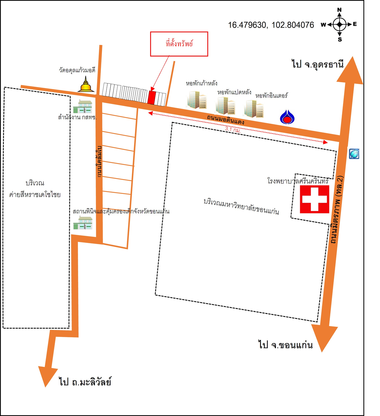 ที่ตั้ง : ติดถนนหลังมหาวิทยาลัยขอนแก่น ห่างจากตลาดโคลัมโบ 400 เมตร