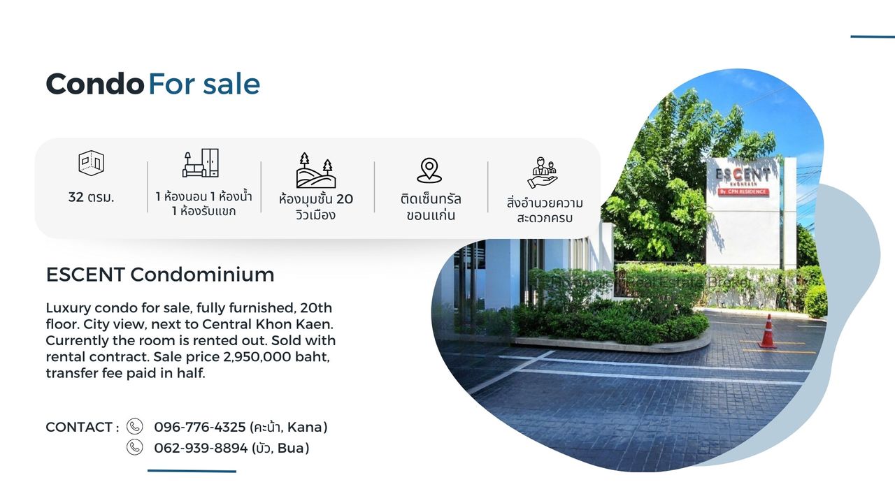 ขายพร้อมสัญญาเช่า คอนโดเอสเซ้นท์ติดเซ็นทรัลขอนแก่น