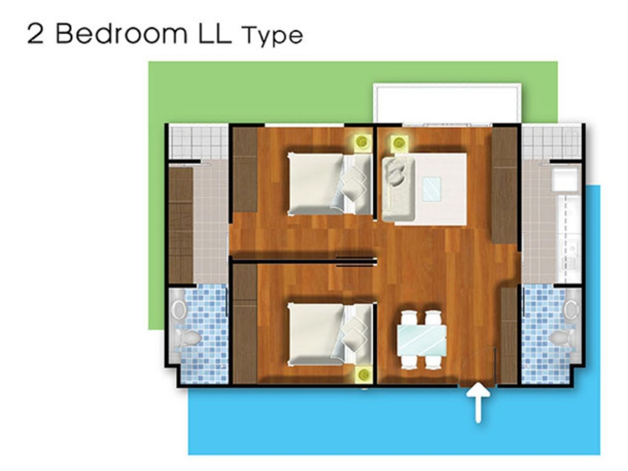 🛏 2 ห้องนอน | 2 ห้องน้ำ | 1 ห้องครัว | 1 ห้องนั่งเล่น | 1 Walk-in Closet